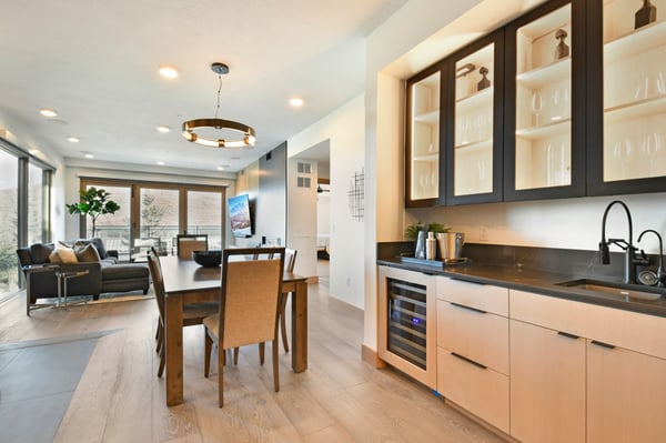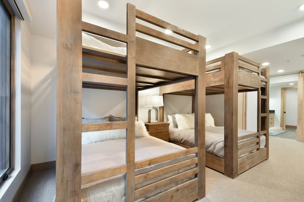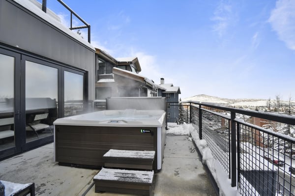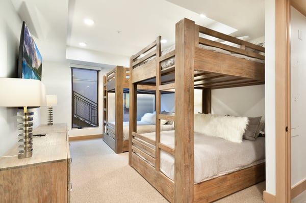 Ski Butlers offers you the best rental experience in the industry. No more lines. Ski Butlers is a full-service ski and snowboard company that delivers the equipment to you. Contact a villa specialist for more information. Kings Crown 201B is an ultra-modern two-bedroom, 2.5-bathroom condo located in the newly developed Kings Crown community, only steps from Park City Mountain Resort and five minutes from Main Street. Ideal for guests who want the privacy of a residence with resort-style amenities, this retreat offers ski lockers, a fitness center, and multiple outdoor lounge areas. Gather with friends around the community firepit or take in mountain views from the rooftop hot tub. Guests will love returning to a comfortable sanctuary with a cozy fireplace and private hot tub. This stunning condo blends contemporary design with the charm of a quaint alpine lodge, where walls of glass frame breathtaking mountain views. The open concept creates the perfect place for friends and family to relax. Sink into the plush sectional and club chairs for relaxed entertainment in front of the impressive wall-mounted TV. The double-sided fireplace seamlessly connects warmth and ambiance to the great room and adjacent primary bedroom. Steps away, an eight-seat dining table invites sit-down meals in a traditional setting with a wet bar and wine chiller nearby—perfect for hosting and entertaining. Additional seating for five can be found at the low-top breakfast bar. Making meals is a pleasure in this sleek kitchen with a minimalistic design featuring high-end appliances and a generously-sized kitchen island. A separate bathroom in the hallway, alongside a private washer and dryer hidden away in the closet, leads to the two spacious bedrooms with private bathrooms. The luxurious primary bedroom boasts a king bed, TV, balcony access, and a large soaking tub, while the versatile bunk room offers two full-over-full beds and a TV—ideal for families. The crown jewel of this condo is its sizeable west-facing balcony, where guests can soak in panoramic mountain vistas from the comfort of a private hot tub while also overlooking the lively street below. On-site parking makes it easy to explore nearby attractions, including world-class skiing at Deer Valley Resort, boating along the pristine waters of Lake Jordanelle, and playing 18 holes at the local golf courses. Also, guests can hop on the free city bus to enjoy local restaurants, shops, and nightlife on Main Street.