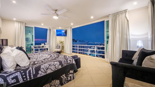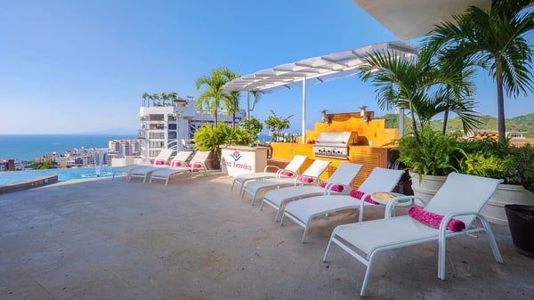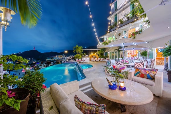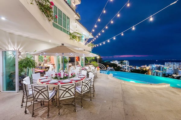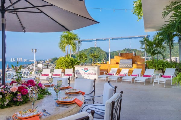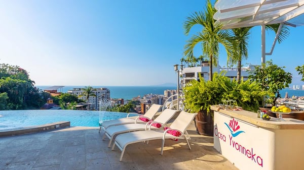 Casa Yvonneka offers a vacation experience like no other, great location hillside just a short walk to the Romantic Zone and very popular Los Muertos Beach, the spacious Lux villa rents 6 to 14 bedrooms perfect for big groups of friends, and multi-generational family groups, and corporate retreats. The villa has a simple contemporary design perfect as a backdrop for the colourful eclectic details & brilliant Fucsia Bougainvillea on every terrace.