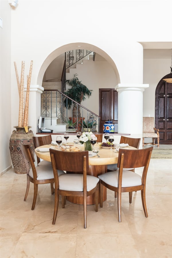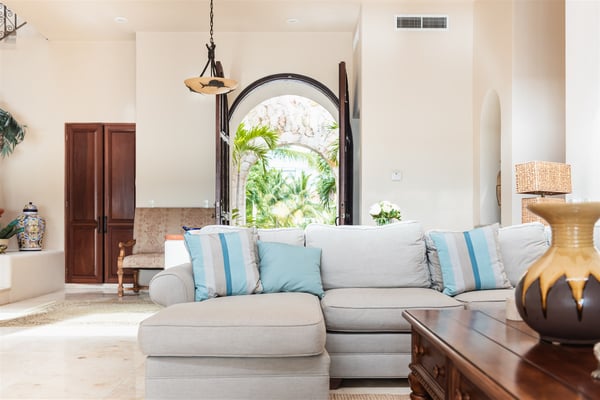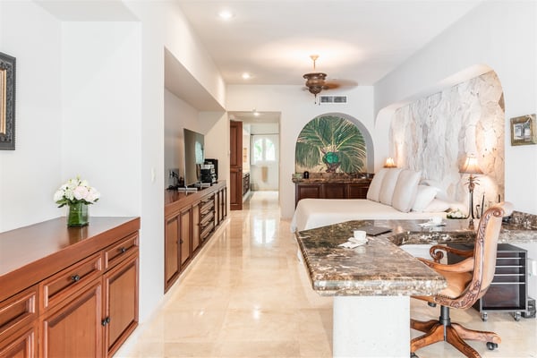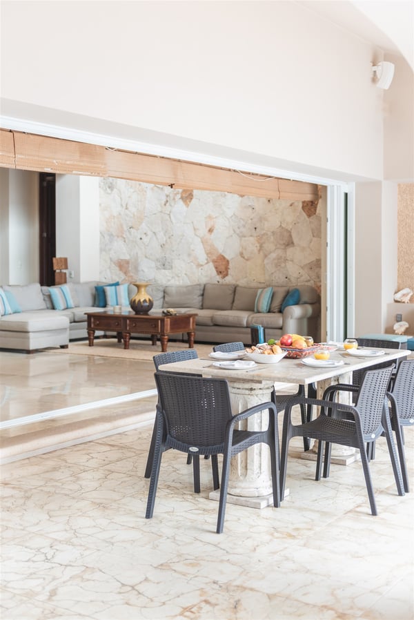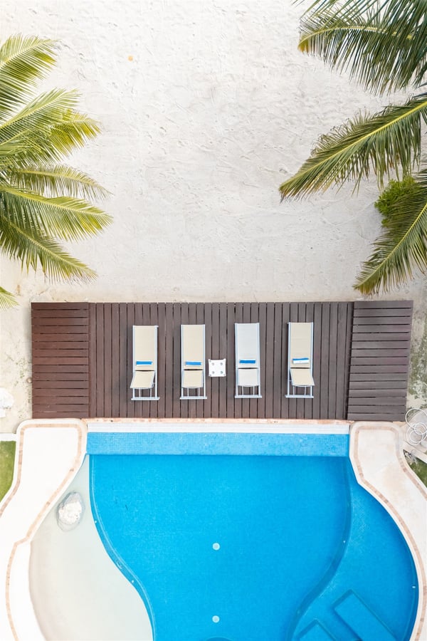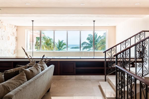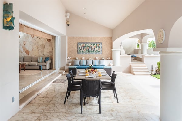 The gorgeous Villa Nautica epitomizes blissful and luxurious vacationing by the seaside. The villa features a rooftop palapa with a double chaise lounge and wet bar with seating not to mention an amazing multi-level beach side pool, deck area, kayaks and much more! Entering the villa you are greeted by a huge open-plan living and dining area leading seamlessly to the outdoor covered terrace, deck and beach area! The fully equipped gourmet kitchen will delight aspiring chefs, from here walk out to the grill area on the terrace, perfect for cooking the catch of the day. The ocean views from the villa are just stunning and you will embrace the nautical feeling of Caribbean style! The villa boasts four sumptuous bedrooms. The huge primary suite with en suite bathroom with double vanity, double shower and walk-in closet is located on the ground floor. From the primary suite you walk out to the Jacuzzi and deck area! A further three suites with en suite bathroom and walk-in closets are located on the upper floor. The upper floor has a large media area with huge satellite television. Relax on comfy sofas and watch your favorite movie. When you are not watching a movie, you will be mesmerized by the amazing ocean views that stretch horizontally the entire length of the living room. From here stairs lead to the amazing roof deck with palapa, wet bar, full chaise lounge and seating area with cushions. A short distance from the villa is the San Carlos marina with many restaurants, bars, boutiques, delicatessens, golf, tennis and more! Villa Nautica is one of the few exclusive four-bedroom private villas located on the sandy Fatima Bay beach. We recommend early booking to secure your preferred dates.