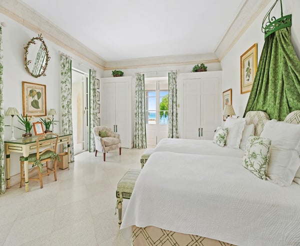 Set in spectacular tropical gardens on a quiet beach beside the Caribbean Sea, Mango Bay has been described as one of the most beautiful houses in Barbados. This natural coral stone home was designed by Oliver Messel and has been lovingly maintained. The tasteful, formal living room flows on to a gracious patio, inviting guests to linger over breathtaking views of the tropical gardens and the Caribbean Sea beyond. Paths lead to the charming dining gazebo on the seaside and to a picturesque lily pond. Guests may also choose to dine in the elegant dining pavilion with its beautiful coral stone table which seats fourteen and overlooks the swimming pool and garden. This house features 7 bedrooms and 7 bathrooms spread across the property, in which one of each is nestled within the enchanting cottage located on the southern lawn. This house comes fully staffed including night-time security.