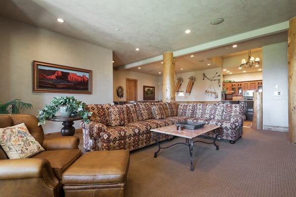 Rental Escapes has partnered with Ski Butlers to offer you the best rental experience in the industry. No more lines. Ski Butlers is a full-service ski and snowboard company that delivers the equipment to you. Contact a villa specialist for more information. Experience an unforgettable alpine getaway at Mountain Glade, a stunning ski-in/ski-out home that accommodates 16 guests within Deer Valley. This lodge-style six-bedroom, eight-bathroom luxury cabin lies 10 minutes from the bustle of Main Street and 12 minutes from the Park City Mountain Resort base area. Imagine waking up to breathtaking alpine views, watching blockbuster hits in a personal theater, and unwinding in the private hot tub—guests will discover endless reasons to fall in love! Exposed logs and vaulted wood ceilings create a picturesque escape inside this sprawling three-level cabin. In the living area, two elegant sofas and two armchairs face a floor-to-ceiling fireplace and TV, while soaring windows frame the view of Lake Jordanelle. Aspiring chefs will love the gourmet kitchen, equipped with a Thermador six-burner gas stove and Nespresso machine. Indulge in a decadent cup of coffee on the wraparound deck overlooking the mountains and lake! For meals, there are two dining room tables, one that seats six and the other eight, along with three additional seats at the breakfast bar. This floor’s primary bedroom includes a king bed, TV, private bathroom, gas fireplace, and deck access. Downstairs is the ultimate entertainment area with a game room featuring a 60” Smart TV, pool table, four-seat card table, and full kitchen. The 12-seat theater room was designed for epic movie nights with a 15’ screen, leather recliners, and a wet bar! A ski room offers lockers for storage, and a relaxing hot tub on the patio soothes sore muscles. Sleeping accommodations include a bunk room with two twin-over-twin beds and two guest bedrooms—the first has a queen bed, and the second boasts a king bed and patio access. The top-level primary bedroom includes a king bed and trundle, private bathroom, gas fireplace, 60” TV, and galley kitchen for guests who desire extra privacy. A guest bedroom with a queen bed completes this floor. Experience the epitome of lodge living at Mountain Glade in Park City. There’s parking for up to five vehicles—including two garage spaces. For ski-in/ski-out access, exit the ski room onto Pioche Loop Trail and follow to the Jordanelle Express Gondola and ticket office. Return from the top by taking Connector Trail to Middle Home Run Trail to Pioche Trail.