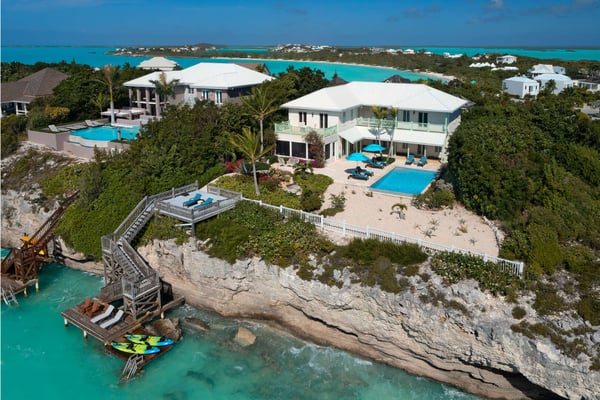 On the shores of Sapodilla Bay, Villa Turquesa offers a unique blend of luxurious amenities and laid-back island style. Located within the Ocean Point Drive Community, this expansive 4,750 sq.-ft. home features exquisite vaulted ceilings, an open layout, and tasteful furnishings. Beautifully designed to provide outstanding views of the pristine turquoise waters from every room, this traditional Colonial Barbadian-style home offers every modern luxury. Villa Turquesa features a beautiful professional kitchen, handcrafted cabinetry, gorgeous hardwood floors, a phenomenal private pool and patio, and perfectly landscaped grounds. The magnificent coral stone exterior has been expertly white-washed and offers a picturesque vision of Caribbean splendour. From the car park to the private waterfront deck, this home has it all. Perfectly perched on the Southwest coast of Providenciales (Provo), this luxury vacation home with spectacular views places all of the wonder of the Caribbean at your feet. From strolling along the exclusive white sand beach of Taylor Bay to slipping beneath the surface of your own secluded pool, Villa Turquesa offers the chance to experience the Caribbean like never before.