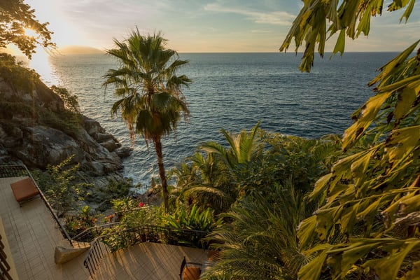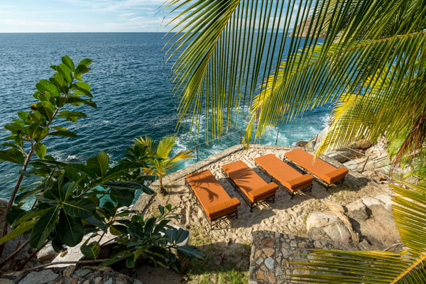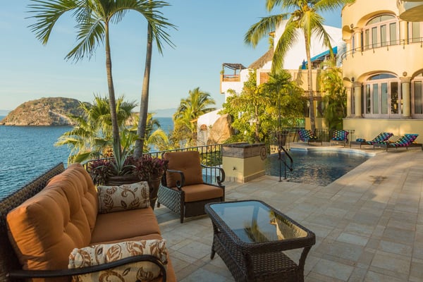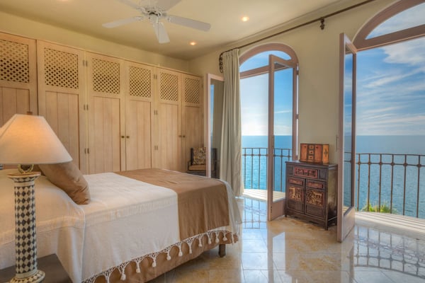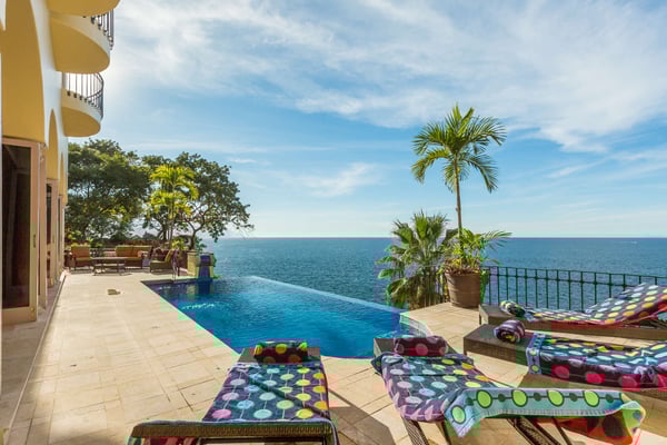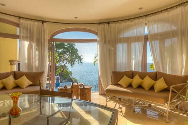Villa Luna Creciente is located on the hillside of Puerto Vallarta’s south shore. The villa has large glass doors that open up the indoor living space to the terrace and infinity pool for unobstructed ocean views. Due to the location of the villa, Internet can be slow or unreliable and is only available in the living room area