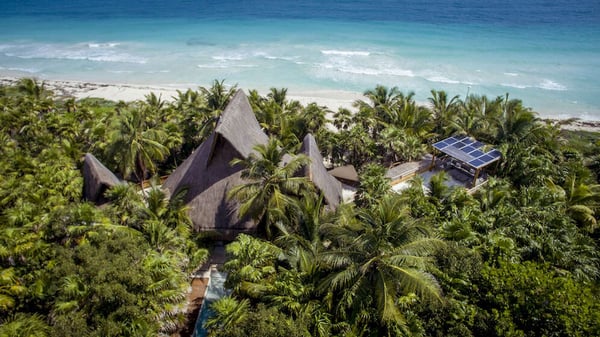 Casa Nalum is built on one of the most magnificent beaches worldwide, inside the Biosphere Reserve of Sian Ka'an, Mexico. Gazing across the sea with gracious open spaces. The villa offers total privacy with high end services, delicious good and is located only 10 to 15 minutes from the restaurants and boutiques on the Tulum Beach area. Nalum meaning 'mother earth' in Mayan, is a place to reconnect, gather and enjoy the simple things in life. The property sits on two acres of wild land, it has over 3,500 square feet of living space and terraces. The villa is powered by solar panels, a wind turbine and a backup generator. All organic waste is treated on site to ensure waste is minimized.