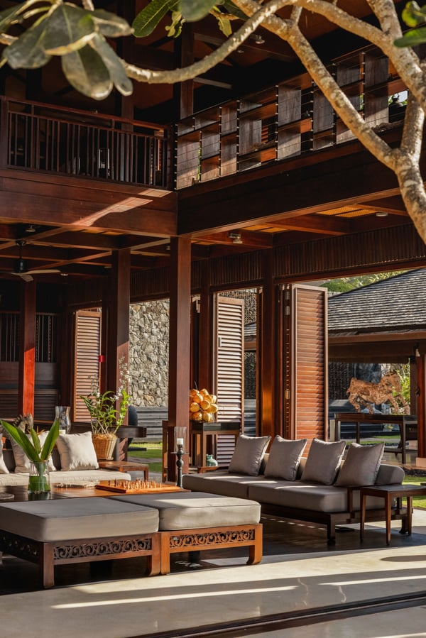 Embraced by verdant jungle on an idyllic, palm-fringed beach, ÀNI Sri Lanka welcomes guests to the island’s pristine south coast and offers panoramic views of the Indian Ocean. Between the market towns of Dickwella to the east and Tallala to the west, just an hour's drive from UNESCO-protected Galle Fort and two hours from a clutch of national parks including Yala and Bundala, ÀNI Sri Lanka is perfectly placed for exploring the south coast's natural, cultural, and historic treasures. Fishermen on stilts are silhouetted at dawn, sacred temples invite contemplation, tea plantations cloak the hillsides in green, and artisans ply their ancient trades, from pottery to lace making, in picturesque villages. ÀNI Sri Lanka's local team takes great pride and pleasure in sharing the region’s many highlights. Vivid jungle on three sides ensures consummate privacy, while every aspect of the resort's design - from its two infinity swimming pools to its multiple living and dining pavilions - is oriented to maximize ocean views. The property offers direct access to the beach along a sandy pathway that winds through palms and indigenous vegetation. Inspired by the nature-framing open spaces of Tropical Modernism, two poolside Living Salas - Villa Monara (meaning Peacock) and Villa Divia (meaning Leopard) - feature upstairs and downstairs living and dining areas that include a lounge, wine cellar, bar, library, and an interactive show kitchen. Alfresco dining can be enjoyed on the terrace, in the five-acre (two hectares) gardens, on the beach, and even in the shallows of the pool.