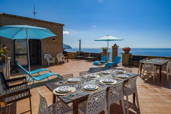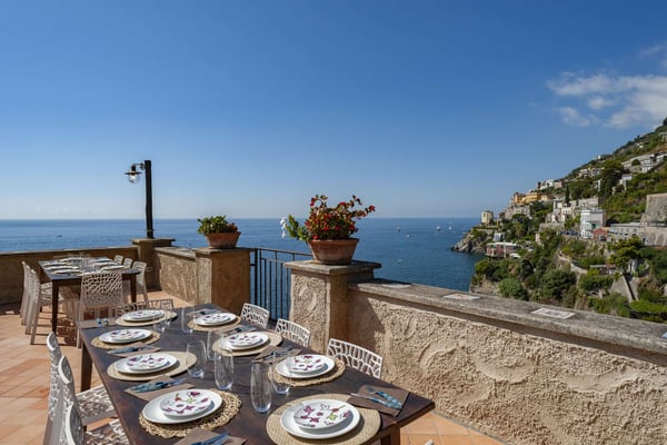 1.5 km to Amfali and Minori. 2.5 km to Maiori. This unbelievable and very grand villa is located in one of the most beautiful and panoramic areas along the Amalfi Coast. It is conveniently located between the two historical towns of Amalfi and Maiori, in a very strategic and exclusive position, offering the most immaculate, unprohibited views and making it a great starting point for easy day trips to all the tourist points of interest of the Amalfi and Sorrento Coasts as well as Naples, Mount Vesuvius, Pompeii, Herculaneum, Paestum,and the Islands of Capri and Ischia.