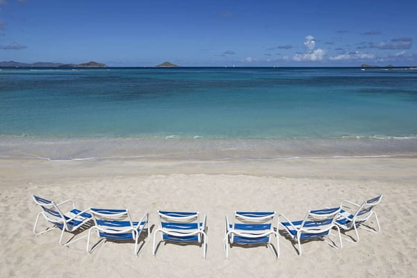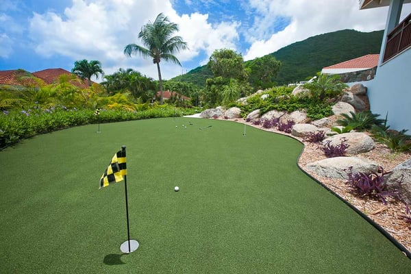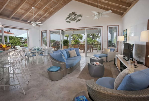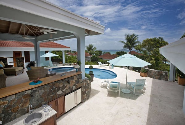 Offering the best of indoor/outdoor living, Blue Lagoon’s Great Room is exquisitely furnished by Janus et Cie and Dedon and includes a gourmet kitchen, wet bar, formal dining room, and entertainment area. The master bedroom has a king bed and en suite bath with double sinks, a shower, and an alfresco rain shower. The second bedroom has two queen beds and the same bathroom amenities as the master. Accessible by exterior steps, the third bedroom has a king bed, two twin beds, and an en suite bath. All bathrooms have elegant quartz counters and Italian marble walling. The grounds of this exclusive Virgin Gorda villa provides a resort-like experience with a soothing waterfall, meticulous landscaping with indigenous tropical plants, and a Zen garden. Your private playground includes a swimming pool and heated hot tub, ping pong table, a first-class four-hole putting green, and the use of a tennis court. Ideal for alfresco dining, the property features an outdoor kitchen with a gas barbecue and charming teak table set under a spacious covered patio. Blue Lagoon is fully-wheelchair accessible (bathrooms will accommodate a wheelchair in the shower area). At no additional cost, the villa offers physically challenged guests a variety of complimentary amenities.