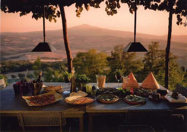 Villa Zaffirano is a magnificent Tuscan country house, located in arguably the most picturesque setting of Italy – the Val d’Orcia area of Tuscany. The setting is ripe with the astonishing rolling hills and the wine country that Tuscany is so well known for. Set on a wonderfully private piece of land, this area was the exact setting for the Oscar winning movie The English Patient and the breathtaking panoramic countryside scenes from the Gladiator. Here you are in an area rich with the best that Tuscany has to offer as you are set in a superbly strategic location. This is some of the best driving and sightseeing country around. You have amazing areas all through the Val d’Orcia (Pienza, world-famous for its town and cheeses, Montalcino & Montepulciano, arguably Italy’s most important wine territory) all between a 15 and 30 minutes drive. The drive through Acquapendente & Pitigliano are some of the most beautiful in Italy, period. Siena is certainly a day trip, San Quirico d’Orcia, a beautiful little nook of a town is only 15 minutes away, Lake Bolsena is near, even Orvieto is only an hour away. Arezzo & Cortona are only an hour and 15 mins away and Perugia, 90 minutes. Here, you are in sightseeing heaven. This is also Golfer’s and Spa enthusiast’s dream location. You have the luxury of Italy’s two premier Spa’s no more than 30 kilometres away as is the Val di Chiana Golf Club (9 holes). The Lamborghini Panicale Golf Club (9 holes) is 50 minutes and the 18-hole Perugia Golf Club just a little bit over an hourish. Simply stated, this is THE perfect rental property. The property is located down an immensely private driveway. There is a semi-private driveway, about a 5 min. drive worth, located off of the main state road. The private driveway leading to this house is up about .02 kilometres into the large hillside where the property resides. This is an extremely cosy, stone Tuscany rental home with great stone-brick floors, offering everything a renter requires. It is a great family home and there is a parking area directly in front of the house with enough space for 3-4 cars and an even larger space about 100 yards away, at the end of the private driveway, if more parking space is needed. This 2 story house offers 5 bedrooms, all with en-suite facilities, and amazing views abound. There is the blue bedroom, which boasts twin beds, an en-suite bathroom, and a small terrace which wraps around to the parking area and to the external dining area. The yellow bedroom is a double with a raised bed (on a loft which is waist level high). The green bedroom is a double and offers a ceiling fan. The fourth is the red, master bedroom with a baldachin bed, a large stone fireplace, small terrace, and en-suite facilities. The 5th bedroom is a dark pink, double bedroom with twin beds and an en-suite bathroom with shower. The entrance foyer boasts a ½ bathroom and there is a cosy living room with a large fireplace, colourful lounge/couch chairs, satellite T.V., DVD player, stereo, and an exit out onto the super-panoramic terrace which boasts patio chairs and a dining table for 12. Next to the living room sits the dining room with large, rectangular table for 10 and an exit out onto the terrace. The cosy, country kitchen enjoys a washing machine, a large refrigerator/freezer with distilled water dispenser. There is a 5-range stovetop, a microwave, slicer, and U.S. coffee maker. The external dining terrace is covered with grape vines overhead and boasts an external barbeque. A small slope or down 30 steps leads to the great pool deck, with comfortable lounge chairs and an infinity pool with super-amazing views. There is an external shower and the entire area is surrounded by nature, apple and fig trees. The pool deck is situated about 200 feet from the house. CIN: IT052031C2VAWJJ7AH