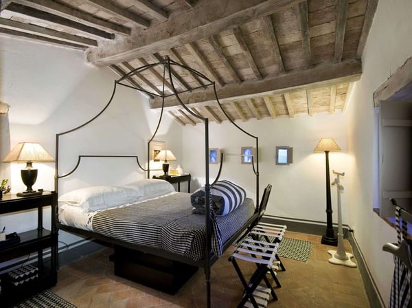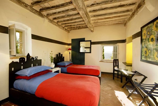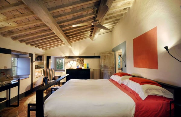 Villa Platea is a magnificent Tuscan country house, located in arguably the most picturesque setting of Italy – the Val d’Orcia area of Tuscany. The setting is ripe with the astonishing rolling hills and the wine country that Tuscany is so well known for. Set on a wonderfully private piece of land, this area was the exact setting for the Oscar winning movie The English Patient and the breathtaking panoramic countryside scenes from the Gladiator. Here you are in an area rich with the best that Tuscany has to offer as you are set in a superbly strategic location. This is some of the best driving and sightseeing country around. You have amazing areas all through the Val d’Orcia (Pienza, world-famous for its town and cheeses, Montalcino & Montepulciano, arguably Italy’s most important wine territory) all between a 15 and 30 minutes drive. The drive through Acquapendente & Pitigliano are some of the most beautiful in Italy, period. Siena is certainly a day trip, San Quirico d’Orcia, a beautiful little nook of a town is only 15 minutes away, Lake Bolsena is near, even Orvieto is only an hour away. Arezzo & Cortona are only an hour and 15 mins away and Perugia, 90 minutes. Here, you are in sightseeing heaven. This is also Golfer’s and Spa enthusiast’s dream location. You have the luxury of Italy’s two premier Spa’s no more than 30 kilometres away as is the Val di Chiana Golf Club (9 holes). The Lamborghini Panicale Golf Club (9 holes) is 50 minutes and the 18-hole Perugia Golf Club just a little bit over an hourish. Simply stated, this is THE perfect rental property. The property is located down an immensely private driveway. There is a semi-private driveway, about a 5 min. drive worth, located off of the main state road. The private driveway leading to this house is up about .02 kilometres into the large hillside where the property resides. This is an extremely cosy, stone Tuscany rental home with great stone-brick floors, offering everything a renter requires on 30 acres of private land. There are two bedrooms located in the main core of the house and an additional three which are technically external bedrooms, but still located under the main roof. There is a nice parking area with plenty of room for more than enough cars required for the capacity of this house. The first double bedroom is a twin and is situated off of the corridor of the main entrance. This twin double enjoys an en-suite bathroom with shower. The second bedroom is a master double with a closet and dresser and beautiful en-suite bathroom with separate bathtub and large, glassed-in shower. This bedroom enjoys a ceiling fan. Down a flight of steps leads to a living room with couches, day beds, a stone fire place and exit out onto a terrace with a dining table for 6, patio chairs, and some of Tuscany’s best views. There is a secondary living area with a daybed (which can sleep one), a card table, T.V., & fax machine. The downstairs area boasts the beautiful, large dining room and kitchen. The dining table is a rectangular table for 10, there is a large, stone fireplace, and the kitchen enjoys a double oven, 8-range stovetop, slicer, dishwasher, microwave, and small island preparation area. Great kitchen for food lovers! There is also a full bathroom with shower and a laundry room with refrigerator & freezer and washer & dryer. The kitchen leads out onto a beautiful and beautifully panoramic stone terrace with covered dining area for10, a nice, large living area with comfortable seating areas and couches. There is a small vegetable garden and outdoor barbeque area. The terrace goes all the way around the house, which is situated on a beautiful mountain surrounded by pine, cypress, fig, nut trees, and grape vines. Views from the property go out over the towns of Radiocofani, Pienza, & Contignano. The terrace leads down to a small set of steps to the pool area with several lounge chairs for sunbathing. The 3rd & 4th bedrooms, located around the back of the house, are independent but can be communicating. The third bedroom is a twin bedroom with en-suite bathroom, while the fourth bedroom is a double with en-suite bath with separate bathtub and shower. The 5th bedroom is the tower bedroom, located up a small flight of steps leading out next to the 3rd & 4th bedrooms. This fifth bedroom is a double with en-suite bathroom with shower. CIN: IT052031C2GUY246TC