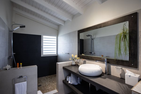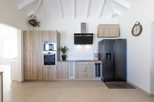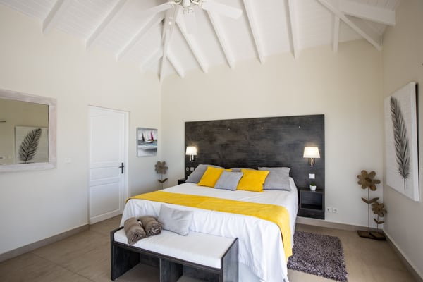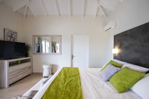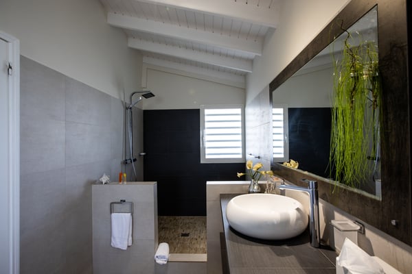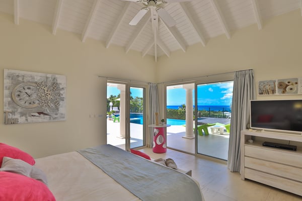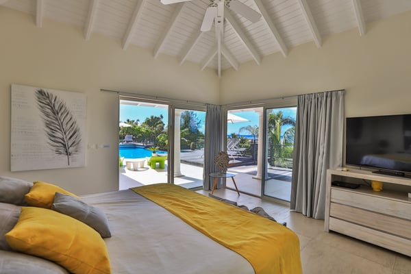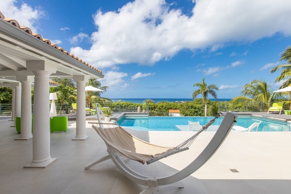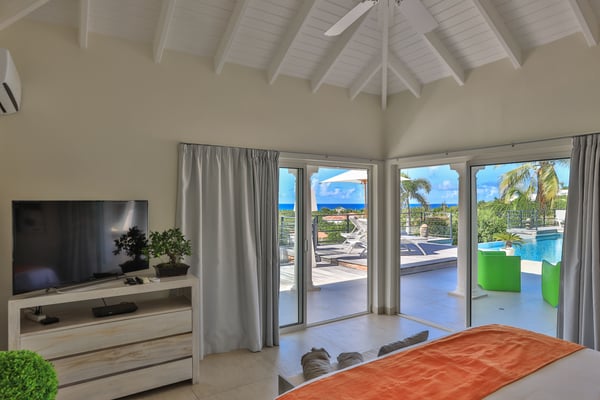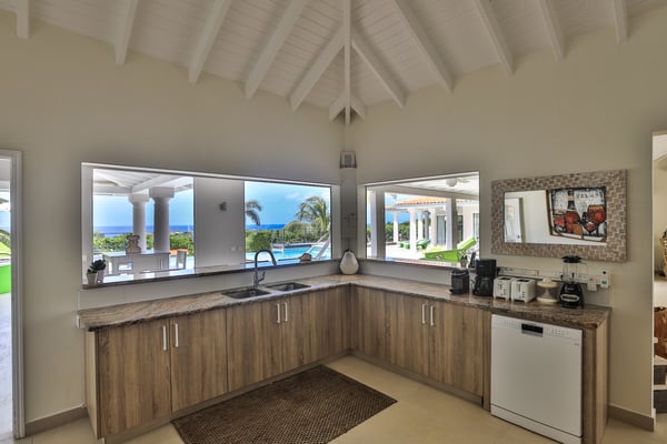 Villa Giselle is a stunning five-bedroom villa located within walking distance of Plum Bay Beach. This fabulous property offers five ensuite bathrooms, ensuring privacy and convenience for each guest. As you step through the entrance of Villa Giselle, you are immediately greeted by an atmosphere of refined elegance. The villa boasts a spacious and thoughtfully designed interior, adorned with contemporary furnishings and stylish decor. The living spaces are bathed in natural light, creating a warm and inviting ambiance that complements the Caribbean charm of the exterior. The villa's kitchen - recently renovated, is a culinary haven, equipped with state-of-the-art appliances, perfect for those who enjoy preparing meals amidst the allure of the tropics. Guests can choose to dine in the elegant indoor dining area or, for a more al fresco experience, indulge in meals on the expansive terrace that overlooks the lush gardens and private pool. On the main level, you'll find four equal bedrooms and bathrooms, all with a view of the ocean. These spacious and well-appointed rooms provide a comfortable retreat after a day of exploring the island. Additionally, the fifth bedroom, recently renovated, with its ensuite bathroom is situated on the lower level, offering a view of the Caribbean Sea. Villa Giselle's outdoor spaces are a haven for relaxation and entertainment. The sprawling terrace features comfortable lounging areas, a dining space for gatherings, and a shimmering pool that beckons for a refreshing dip. Surrounded by lush greenery and swaying palm trees, the outdoor area exudes a sense of serenity, making it an ideal setting for both intimate moments and festive celebrations. Please note that the pool is heated from October 15th to April 15th. Outside of this period, heating the pool is optional and comes with an additional cost of $350 per week. Villa Giselle is not just a luxurious retreat; it is an immersive experience that combines the comforts of modern living with the breathtaking beauty of St. Martin's natural landscape. Whether lounging by the pool, exploring the nearby beach, or simply savoring the tranquility of the villa, every moment at Villa Giselle is an invitation to embrace the best of Caribbean living. Whether you choose the three, four, or five-bedroom configuration, this beautiful villa offers a serene and luxurious setting for your stay.