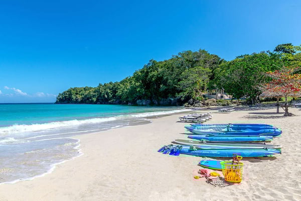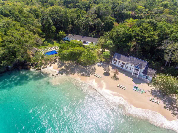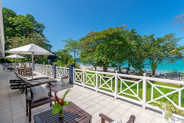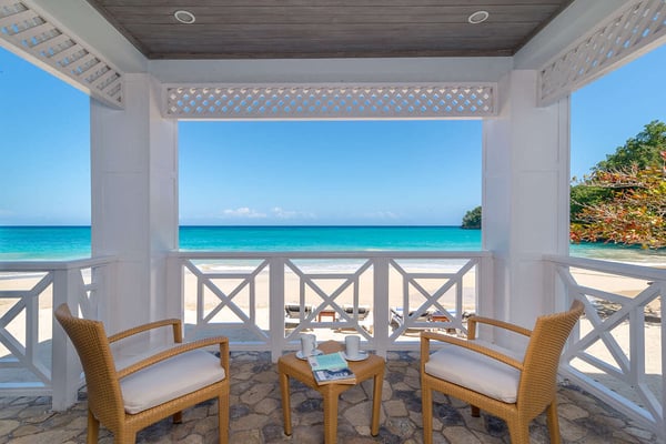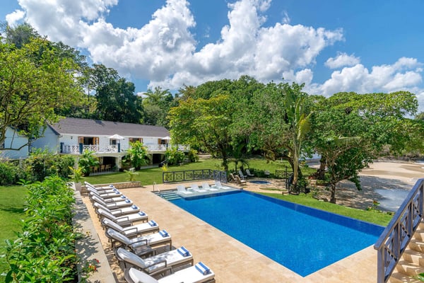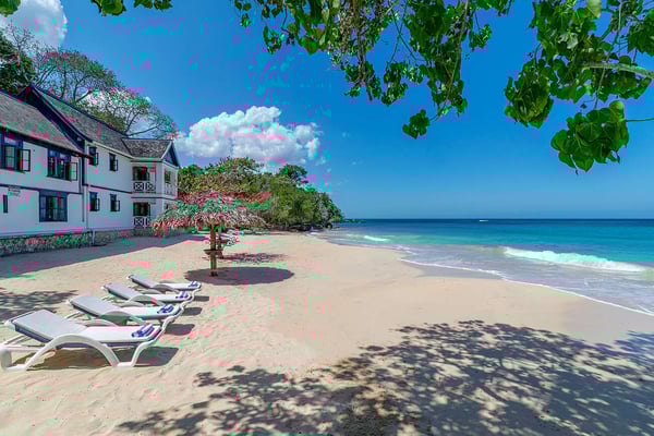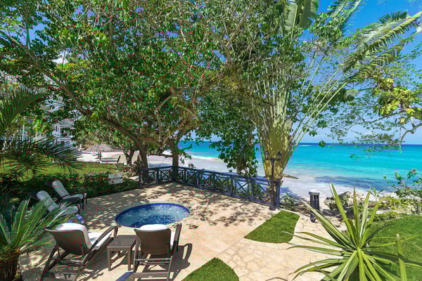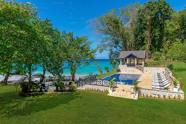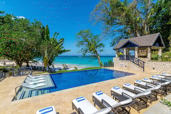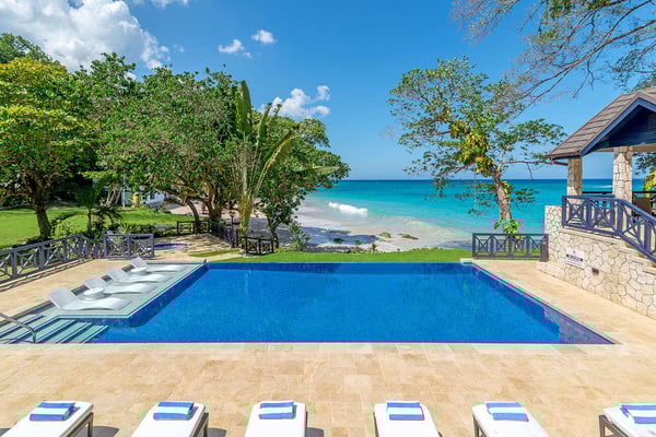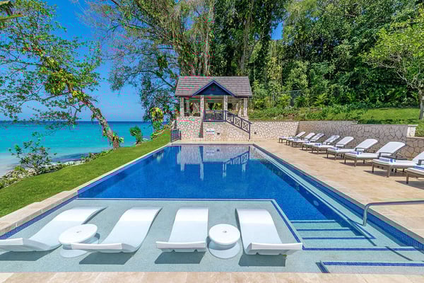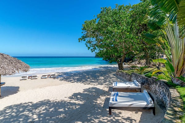 Frankfort has once again reaffirmed its position as one of the most desirable properties in Jamaica with the addition of a beautiful new swimming pool. Completed in 2019, the pool complements what is arguably the best private beach in Jamaica. The secluded white sand beach is an attraction that has been enjoyed by some of the greatest luminaries of the 20th century. The old sugar wharf house of the 18th Century still retains its original beamed ceilings and fortified stone walls, but now has been renovated into a spacious and airy dining room and living room. Included in the Frankfort rental is another charming house situated right on the beach. This old School House is self-contained with its own three bedrooms, bathrooms, and living room. A romantic hideaway where guests can sleep with the soothing sound of the Caribbean sea lapping against Jamaica's most exclusive beach. The School House has also been completely renovated with new furnishings, a bathroom, and the addition of an exercise area with a new high-end treadmill. The School House also has wireless ADSL. Frankfort’s two acres include a 6,000-square-foot soft lawn and the remarkable 7,500-square-foot private beach. The private beach at Frankfort has to be the finest white sand beach in Jamaica. In addition, the villa has recently added an eight-person spa close to the beach.