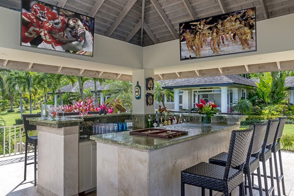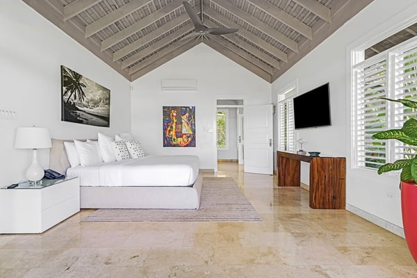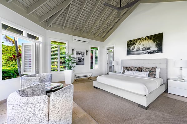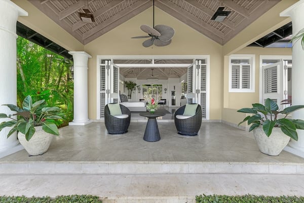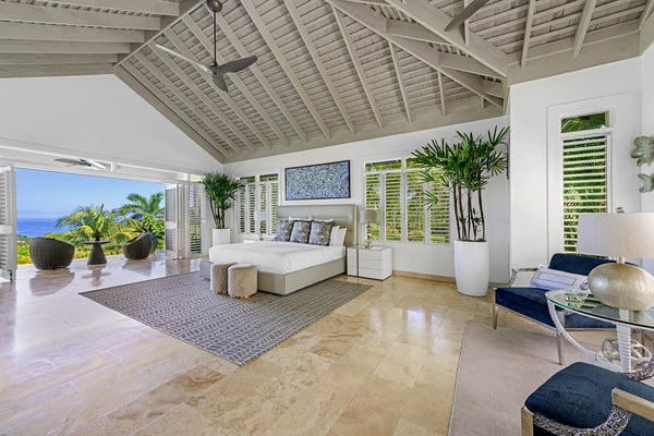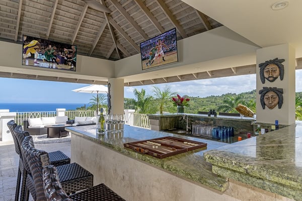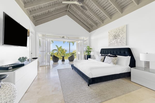 The Tryall Club requires all villa and condo guests to become members during their stay via a Temporary Membership Fee ($) (plus a 15% service charge). Children between the ages of 13 and 15 pay at a discounted rate (plus a 15% service charge). Guests can also pay per day, for guests ages 16 and older, who stay for one to four days. This can be either prepaid or upon arrival at the Club. For children 12 years of age and younger, our Temporary Memberships are complimentary. Please contact a Villa Specialist for exact pricing! There are villas, and there’s Harmony Hill. A breathtaking retreat offering one of the most spectacular locations at Tryall. Perched 350 feet above sea level, Harmony Hill spans seven acres of lush gardens and organic farmland designed to deliver the ultimate luxury experience. With an elite team of 11 dedicated to world-class hospitality, it’s no wonder Harmony Hill has an enviable guest return rate. Every room in the villa offers unparalleled ocean views, with an infinity pool terrace that seamlessly blends into the horizon. The sophisticated sitting room, wet bar, and formal dining space for 16 create the perfect backdrop for memorable events, while the open-concept main pavilion boasts soaring ceilings that call you to the sea. A media room with a 65-inch surround-sound TV provides a cozy escape. At the same time, the covered veranda with plush seating and a dining area invites guests to linger over meals with an incredible ocean backdrop. The poolside bar and fire pit lounge are guest favorites, offering panoramic views stretching out to sea and into the lush valley. For wellness enthusiasts, the private ocean-facing gym is fully equipped with top-tier machines. Harmony Hill offers seven opulent, air-conditioned bedrooms with spa-like en suite baths and views of the ocean. The entire property is furnished with Smart TVs, surround sound, and Wi-Fi. The villa’s elegant atmosphere is enhanced by its carefully selected art collection, which makes each visit feel fresh, inspiring, and unique.