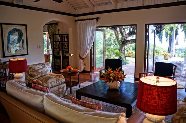 The Tryall Club requires all villa and condo guests to become members during their stay via a Temporary Membership Fee ($) (plus a 15% service charge). Children between the ages of 13 and 15 pay at a discounted rate (plus a 15% service charge). Guests can also pay per day, for guests ages 16 and older, who stay for one to four days. This can be either prepaid or upon arrival at the Club. For children 12 years of age and younger, our Temporary Memberships are complimentary. Please contact a Villa Specialist for exact pricing! Avalon Villa is the perfect retreat for anyone seeking solitude, tranquility, and traditional Jamaican charm. Beyond just being a beautiful home, Avalon captivates guests with its coziness, warmth, and excellent staff who go above and beyond to make every stay unforgettable. This serene haven offers stunning views of the valley and the Caribbean Sea. Avalon is a single-story villa with a large main house and a quaint white cottage that was designed in the traditional Jamaican style. Intimacy and space are perfectly balanced in the main house, which has two exquisitely furnished bedrooms, and the cottage, which has two more guest rooms. Guests can arrive via an elegant stone Venetian staircase from the ocean side or through grand wooden doors at the front. Inside, polished wood floors, soft blues, greens, and corals create an inviting ambiance. The open-concept living and dining areas lead to a cozy media room, while a shaded brick terrace provides a peaceful place to unwind. A few steps down, the heated infinity pool and sun deck offer breathtaking ocean views. The primary suite hosts a king-size bed, while the guest room has convertible twin beds. Each en suite bathroom features a walk-in shower and a soaking tub. The guest cottage offers two more en suite bedrooms, one with a king bed and the other with twin beds that convert to a king.