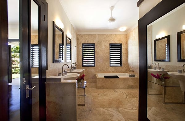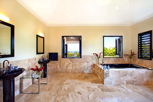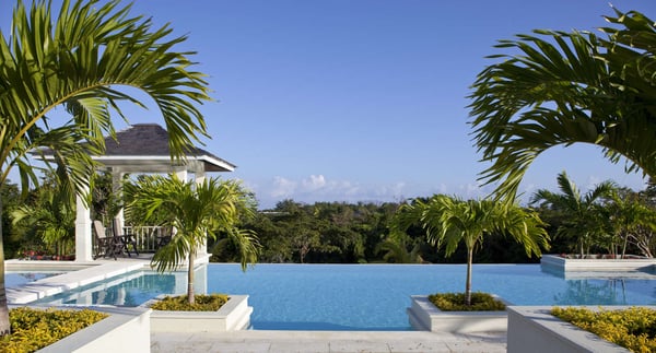 The Tryall Club requires all villa and condo guests to become members during their stay via a Temporary Membership Fee ($) (plus a 15% service charge). Children between the ages of 13 and 15 pay at a discounted rate (plus a 15% service charge). Guests can also pay per day, for guests ages 16 and older, who stay for one to four days. This can be either prepaid or upon arrival at the Club. For children 12 years of age and younger, our Temporary Memberships are complimentary. Please contact a Villa Specialist for exact pricing! Hanover Grange is a stunning private villa that has hosted celebrities, politicians, and business leaders. Its spacious layout makes it ideal for larger groups and families who are after a blend of luxury, privacy, and room to unwind. The villa’s “Long Gallery” shows off a curated collection of Jamaican art. It features works by masters like Barrington Watson and Albert Huie alongside contemporary artists. Every detail, from striking architecture to a custom Ralph Lauren pillow menu, is designed for relaxation. Seamlessly blending modern design with Jamaican influences, the villa boasts crisp, minimalist lines, marble and mahogany flooring, and breathtaking views. The main house has six bedrooms, including a lavish primary suite with a private den. Four guest rooms feature king beds, while one has two queens. Each en suite bathroom is finished in fine marble, with walk-in showers, soaking tubs, and state-of-the-art fixtures. Five bedrooms open onto private terraces with stunning vistas. Designed by Jamaican-born homeowner Theresa Roberts and her husband Andrew, Hanover Grange reflects her deep love for Jamaica and the arts. Sculptures by international artist David Begbie complement the home’s contemporary aesthetic. Dine indoors in the grand dining room, outdoors under the stars, or in the charming gazebo with spectacular views. A heated infinity pool completes the experience.
