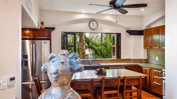 Just a short walk to a private beach, and recently completed by architect Miguel Loza, this magnificent villa is designed to take. The villa is located inside an exclusive gated community and surrounded by manicured tropical gardens. It combines classic architectural elements with state of the art technology. Pure elegance and comfort awaits you with the most amazing views. The large villa located in an exclusive gated community has everything you could want and more. Our five star chef and staff are here to pamper you during your stay. With the spacious open areas at the villa and the amazing infinity pool, there is pure comfort for everyone. Spending a day at the private beach area is only minutes from the villa, where we offer beach side service and a wonderful restaurant.