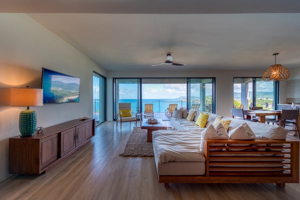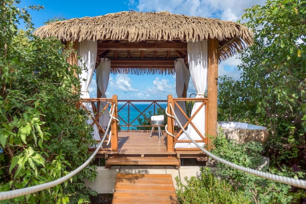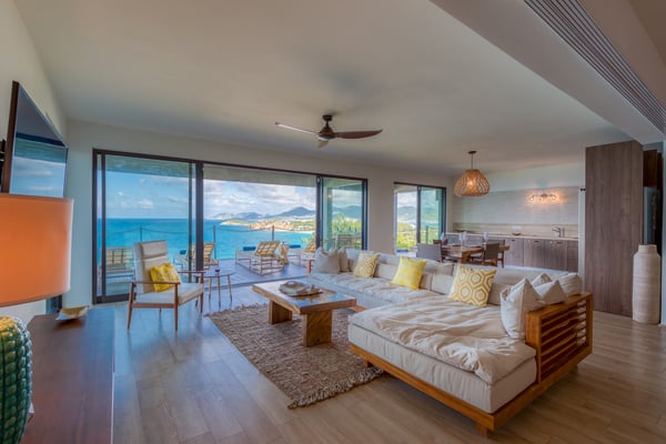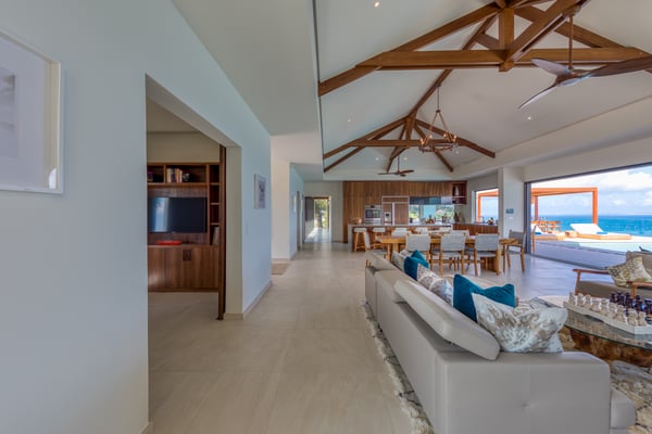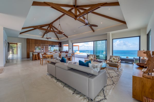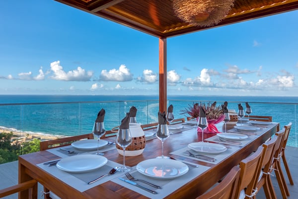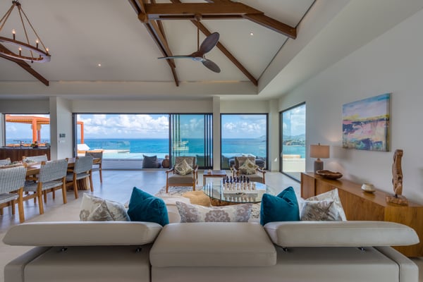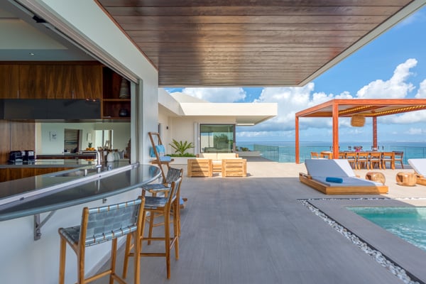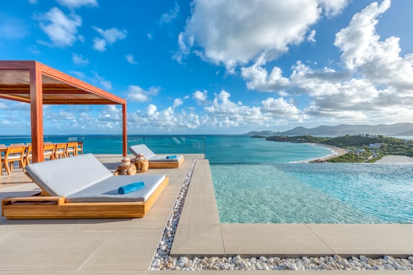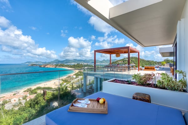 Nestled on the picturesque island of Saint Martin in the Caribbean, Amandara stands as a testament to luxury, elegance, and tranquility. This magnificent 5-bedroom villa is a paradisiacal haven that offers an unparalleled experience of tropical living. From its stunning architecture to its breathtaking views of the azure Caribbean Sea, Amandara beckons travelers seeking the ultimate in relaxation and indulgence. Amandara is a true architectural gem, seamlessly blending modern aesthetics with the island's natural beauty. The villa's exterior features sleek lines, lush landscaping, and a dramatic infinity-edge pool that seems to merge with the ocean beyond. The use of natural stone, wood, and glass throughout the property creates a harmonious connection between indoor and outdoor spaces. This villa boasts five spacious interiors bedrooms, each exquisitely appointed with plush furnishings, elegant décor, and private en-suite bathrooms. The master suite, in particular, is a sanctuary of comfort and style, with an ensuite private bathroom offering breathtaking ocean views and a bathtub as well as an outdoor shower. Four of the five bedrooms are on the main floor, and the fifth is in a small, private apartment on the lower level. The open-concept living and dining areas are equally impressive, with high ceilings, large windows, and chic furnishings that create an inviting atmosphere for relaxation and entertainment. When the villa is rented in full during the high season and the holiday season, you will have the privilege of having a private chef prepare delicious meals for you (3 meals per day - cost of food & drinks additional). The villa's expansive grounds are a paradise for outdoor enthusiasts. Take advantage of the volleyball and bocce courts, where you can challenge your friends and family to some fun-filled matches. These activities provide a wonderful opportunity to bask in the island's beautiful weather and enjoy friendly competitions surrounded by mature plantings and lush landscaping. A truly enchanting addition to Amandara's offerings is the "Bali" gazebo. This exotic and secluded retreat is nestled within the villa's lush gardens and offers a unique experience. Here, you can relax in an outdoor tub, surrounded by the sounds of nature and the fragrance of tropical blooms. Amandara is a lavish retreat where modern luxury meets natural beauty. It's a place where you can escape from the ordinary and immerse yourself in the extraordinary. Whether you seek relaxation, adventure, or a romantic getaway, Amandara in Saint Martin promises an experience like no other—a true paradise found.