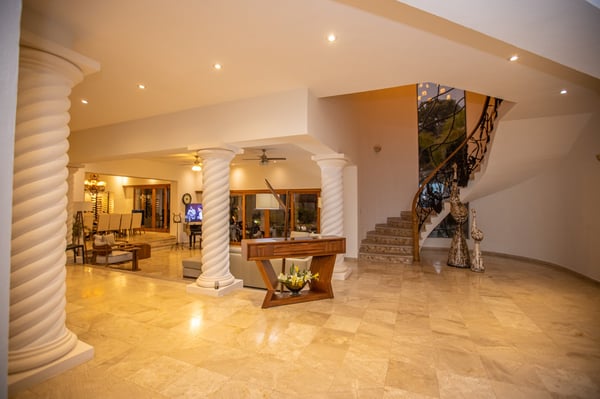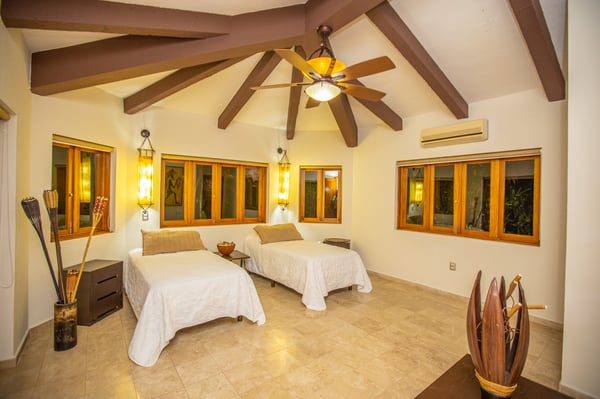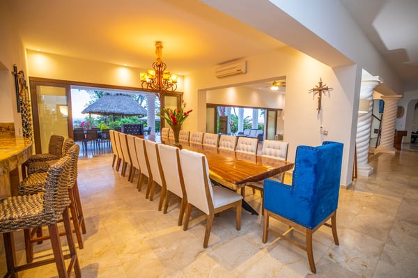 Tesoro del Mar is the perfect property for large groups. Tucked away in a quiet gated community surrounded by lush forest, privacy abounds. The house staff was attentive to every need of our group, meals were delicious, and the fridge was kept stocked with all that we requested. The pools were heated and sparkling clean and the patio spaces offers shade, sun, covered areas, celling fans, and lights which make it a great place to relax both day and night no matter the weather. Inside the villa, the furniture is modern, there is an AC unit in the main living space, the beds are comfy, and the floor to ceiling window walls all open making the house open to the outside. The eight bedrooms all have AC units and en suite bathrooms (though only three of them have hot water in the showers). The Rental Escapes staff made booking our accommodations and services a breeze and were delightful to work with.