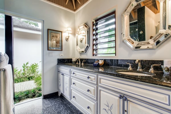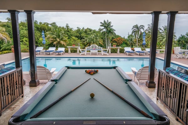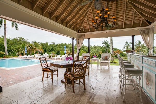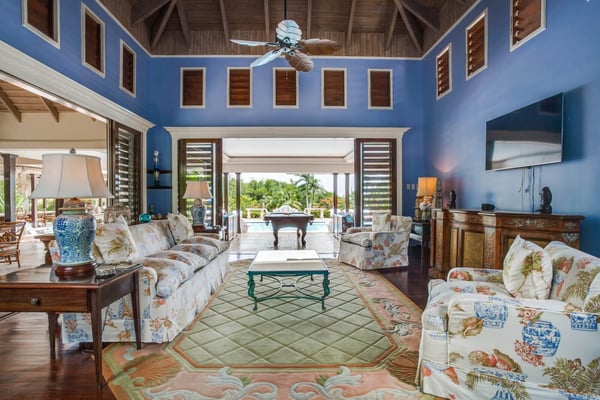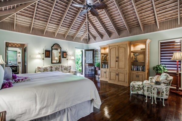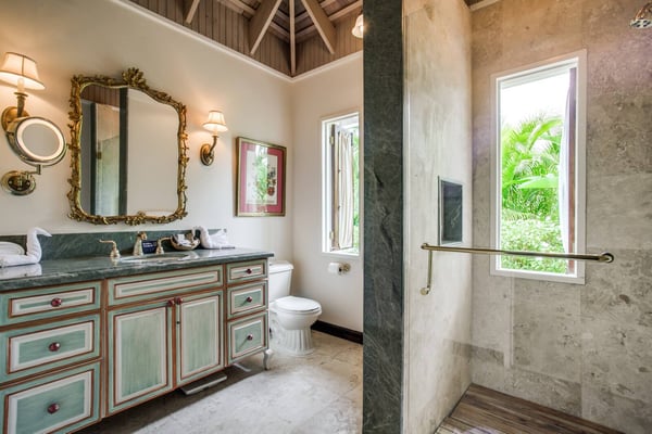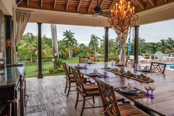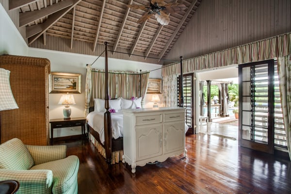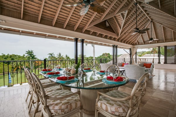 The Tryall Club requires all villa and condo guests to become members during their stay via a Temporary Membership Fee ($) (plus a 15% service charge). Children between the ages of 13 and 15 pay at a discounted rate (plus a 15% service charge). Guests can also pay per day, for guests ages 16 and older, who stay for one to four days. This can be either prepaid or upon arrival at the Club. For children 12 years of age and younger, our Temporary Memberships are complimentary. Please contact a Villa Specialist for exact pricing! Sundance is a breathtaking villa set amidst lush gardens, offering sweeping Caribbean sea views. With one of the most beautiful verandas at Tryall, the villa is the perfect blend of comfort, luxury, and relaxation. Located on Mahogany Drive, this villa spans one level with a seamless flow of space. The design embraces classic Jamaican architecture, bringing the outdoors in and making the most of its surroundings. The villa is furnished with handpicked designer fabrics and a curated collection of local art while focusing on ultimate comfort. The expansive gardens are a highlight, and an on-site kitchen provides fresh meal ingredients. The spectacular veranda, which spans the entire width of the villa, is the focal point of Sundance. It has a dining gazebo, several seating areas, and a sizable pool encircled by chic furnishings. A second dining space, ideal for evening cocktails, and a viewing bar are accessible via a stairway. The private gym in a lower gazebo offers a peaceful space to unwind. The pool has a fence that can be placed around it for small children. With seven beautifully appointed bedrooms, including a luxurious primary suite, sitting room, and private veranda, Sundance offers the perfect balance of privacy and communal spaces.