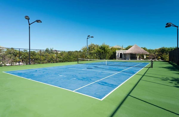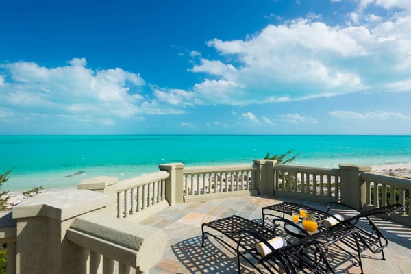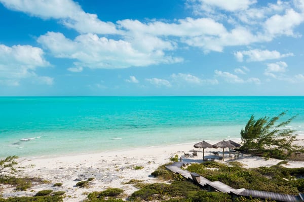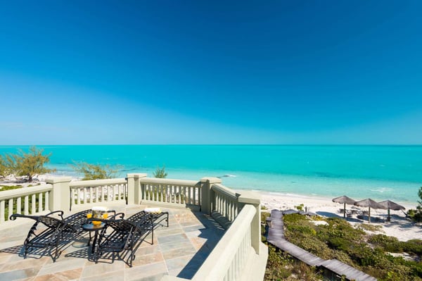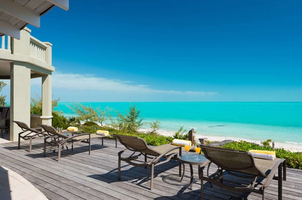 Casa Varnishkes (Casa V) welcomes you to the quiet side of Providenciales, Turks & Caicos. Located directly on peaceful and private Long Bay Beach, this magnificent gated estate offers the ideal setting for a luxurious yet totally relaxing vacation. Celebrate your fairy tale anniversary or other special events on the marble pool terrace, overlooking the pristine waters of the Caicos banks or under a tent on the tennis court. Play, swim, snorkel or sunbathe with family or friends on the nearly private sandy beach, only steps away from the house; or just relax on one of the terraces or porches, taking in the magnificent panoramic view of Long Bay, an exquisite sunset or maybe even a breathtaking sunrise! This luxury villa estate, built over two and a half acres, features all the amenities that one would expect from a distinctive property. The 7 000 square foot main house is directly on 170 foot of beachfront, with a large marble pool pavilion, a 40-foot freshwater pool, covered outdoor dining with seating for up to 20, adjoining outdoor bar, barbecue, media room, fully equipped gourmet kitchen, modern office with internet and printer, full air conditioning and sumptuous bedrooms with en suite bathrooms and private terraces overlooking the sea. Just steps away is the new Guest House with an additional three bedrooms, two bathrooms, a living-dining area and kitchenette, covered patios overlooking the ocean and a separate laundry room. As an added benefit, one of the bedrooms in the main house offers an attached sitting room with a pullout sofa bed and television. The newly completed tennis pavilion features a fenced all-weather court and lighting to enjoy night-time playing, a large and well-equipped tiki bar with bar fridge, sink, and outdoor furnishings, and a fitness room which also has a pullout sofa bed and full bathroom. Casa V is a dream Caribbean vacation home where you are guaranteed a friendly welcome and personal service through our Villa Manager and resident caretaker while here. Butler, Maid, Nanny, Chef Service, Spa Therapist and more can be arranged before arrival. The property has a pool keeper and gardeners who come once a week, a housekeeper will do a mid-week cleaning or daily housekeeping can be arranged. You are also conveniently located just 20 minutes from the airport, 12 minutes from resorts, restaurants, and shopping and 15 minutes from the golf course. Please note that four, six and nine-bedroom rental options are available depending on the time of year; see rates below.