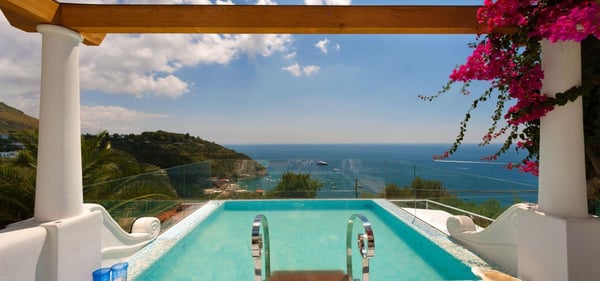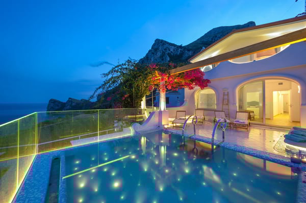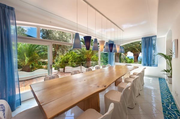 Contemporary-styled and tastefully appointed, Villa Galene offers stunning views of the sea and several pampering amenities, such as a private swimming pool, a unique plunge pool with hydro jets, two panoramic terraces, and a manicured garden. The villa is close to stores and local restaurants; it is conveniently located 30-minute drive from Sorrento and five minutes from the beach. The three-story villa has a crisp, tailored look and its custom-designed furniture, original artwork and contemporary pieces create an eclectic, yet warm style. Its spacious and bright interiors are ideal for celebrating your time off relaxing together with your family or a group of friends. CIN: IT063044B4VDBQT55Q