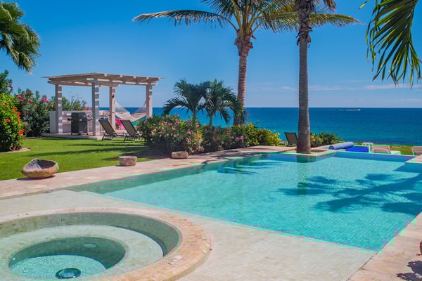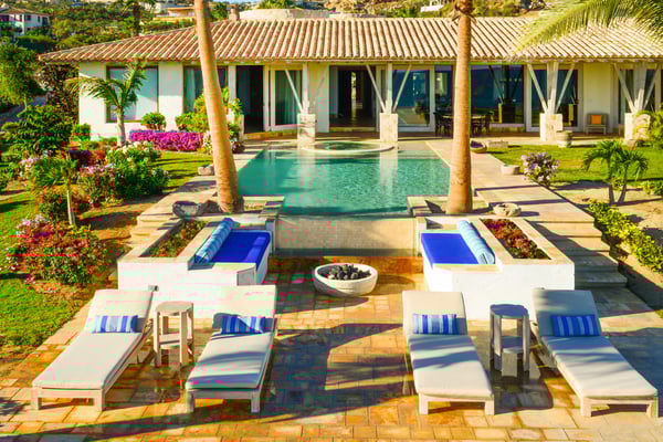 Nearby construction may result in noise disturbances. For further details on how this might affect your stay, please reach out to a villa specialist. Embrace the refined luxury of Villa Piedra Blanca, an exquisite beachfront villa nestled within the exclusive Puerto Los Cabos community. Recently renovated to perfection, this 5-bedroom sanctuary accommodates up to 10 guests, offering an inviting ambiance where elegance meets tranquility. From the moment you step onto the terrace, you’ll be mesmerized by the panoramic views of the Sea of Cortez, creating the perfect setting for both relaxation and celebration. Spend your mornings basking in the sun or lounging by the private infinity pool, and your evenings enjoying gourmet meals prepared on the BBQ grill while sipping a refreshing margarita from the wet bar. Inside, each bedroom is a haven of modern luxury, designed for restful nights and peaceful mornings. Gather with loved ones in the spacious living room or under the charming palapa, sharing stories and laughter. For those seeking adventure, explore the pristine beaches, enjoy snorkeling or paddleboarding, or take a golf cart to nearby world-class golf courses. At Villa Piedra Blanca, every detail is crafted for an unforgettable getaway. Toast to memorable nights around the firepit under the starlit sky. Book now and let this stunning villa be your gateway to the magic of Los Cabos.