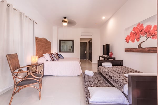 Villa Bellamar is the right place to get away from the hustle and bustle of crowds. The comfortable and spacious interiors as well as the common areas in Villa Bellamar, which include a large pool, terraces, balconies, sandy areas for sunbathing, a great rooftop observatory and an outdoor BBQ grill, make this Akumal villa a place you will want to come back to year after year. This is a spacious villa perfect for large family vacations, weddings, celebrations, gatherings, courses or workshops, and reunions with friends. With 13 primary bedrooms, all of them with ocean views, this Akumal villa can accommodate up to 52 (max 39 adults and 13 children). Villa Bellamar where attention to detail is second to none and has been designed with you in mind. Staying in this Akumal villa you will have all the activities and attractions of Akumal at your fingertips. Villa Bellamar has been built thinking of your comfort; making this 13 bedroom villa the right choice for a wedding, honeymoon, vacation and also ideal for families. Our luxury Caribbean villa offers a tropical getaway in a place renowned for old-fashioned hospitality and timeless elegance. Enjoy private pool and fabulous beachfront or hillside settings just minutes!