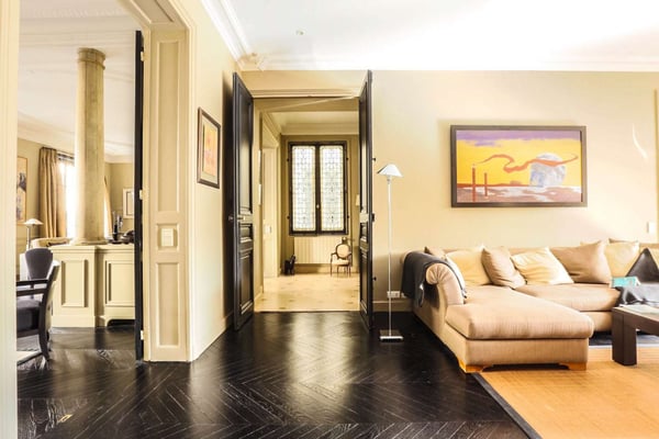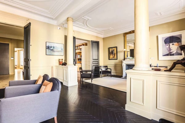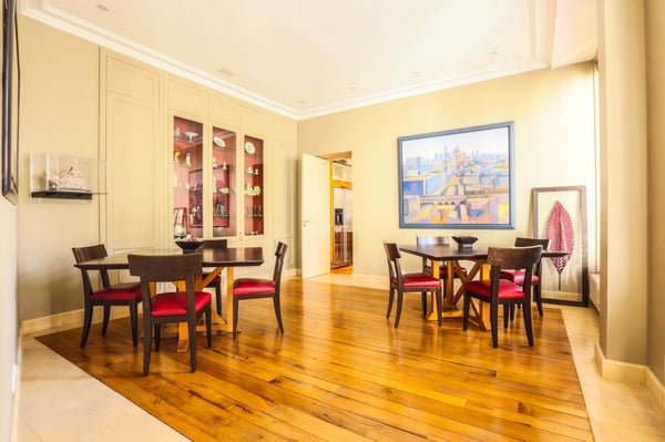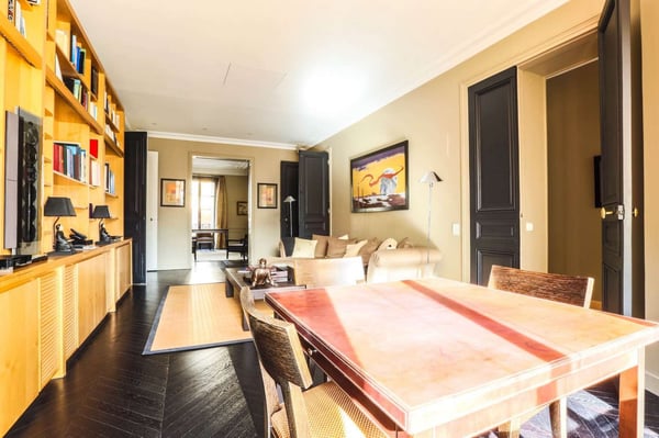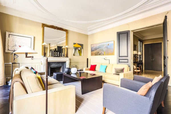 Nestled in the most beautiful district of Paris, in the heart of St-Germain-des-Prés, this spacious and highly ranked three-bedroom apartment is situated in a luxurious building, supervised by an on-site caretaker and easily accessible by a lift. This luxurious apartment is in the 7th district on the third floor of an archetypal Haussmann building from the late 19th century. Each bedroom is equipped with an en-suite bathroom, with a shower, a bathtub, or both! One can truly appreciate the brightness of this entirely modernised and fully equipped apartment offering large windows allowing natural sunlight, high pressed ceilings, tasteful decor and comfortable luxurious furnishing. Saint-Germain-des-Prés is widely known as the most desirable area of Paris. And rightly so, Saint-Germain really does seem to have it all, and that includes but certainly is not limited to the finest Parisian boutiques and restaurants, a buzzing ambiance in the day or at night, fabulous architecture, and a profoundly ingrained sense of history and culture that draws Paris' best antique dealers and lovers. The location is really quiet and beautiful near Sainte-Sulpice church, and easy access to subway, bus, and taxi stations.