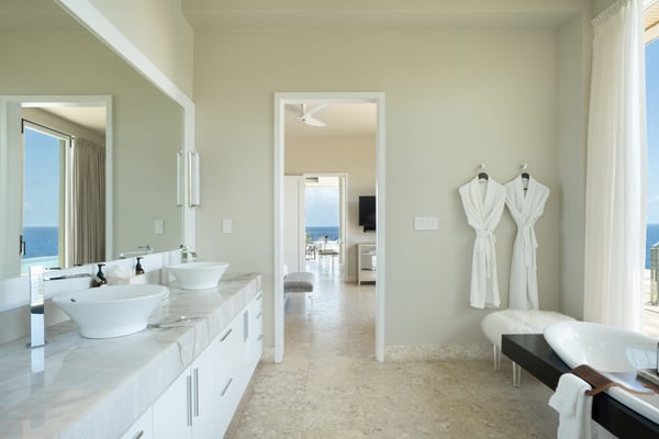 Oil Nut Bay’s Cliff Penthouse is the epitome of exclusivity paired with island chic. With its spacious floor plan that seamlessly extends outdoors onto a wraparound terrace and large infinity pool, this is one of our more sought-after BVI rentals. Towering glass doors open remotely to a terrace and infinity plunge pool with endless ocean views, while inside you can enjoy an open floor plan with one private bedroom and a luxurious ensuite bathroom.