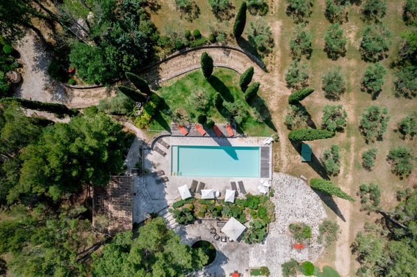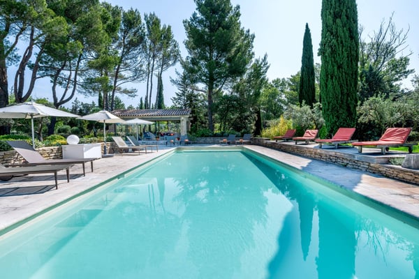 This newly restored house, named 'Les 3 Nicole', near St Remy de Provence, can accommodate up to 14 guests, and is set at only 800 meters from the famous village of Eygalieres at the heart of the Alpilles. Seven double bedrooms, seven bathrooms, a swimming pool, Wi-Fi, a gym, and a treehouse. A very charming place in Provence.