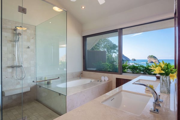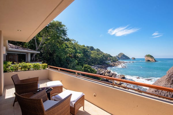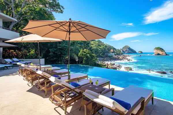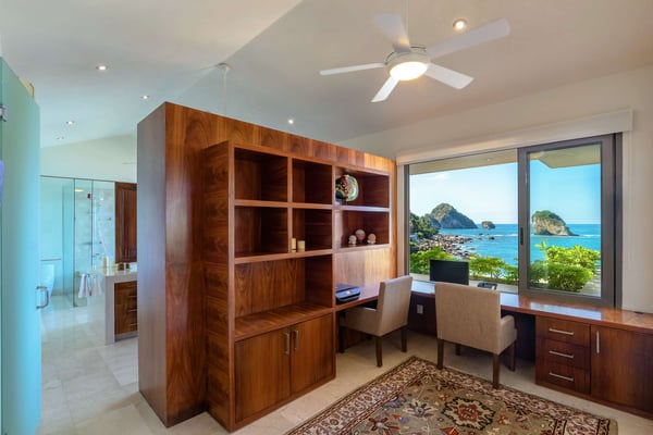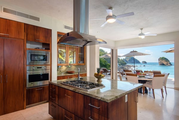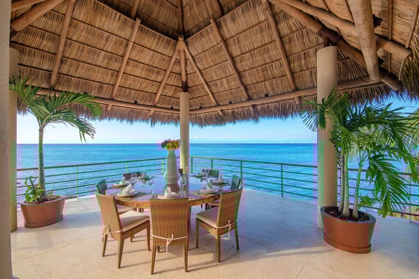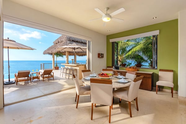 Villa Kismet sleeps up to 16 and offers an Ocean-Front private infinity pool, hot tub, elevator, and a full staff of 4, including a chef, butler, houseman, and housekeeper. This stunning architectural estate offers a modern aesthetic and luxury features with an attention to detail that is unmistakable. Villa Kismet combines contemporary design and oceanfront elegance with a lush jungle setting found only in this Sierra del Mar at Los Arcos gated community. Villa Kismet features a dramatic interior garden courtyard, simple and clean lines in design, floor-to-ceiling glass, marble flooring, quality handcrafted cabinetry, and very special design features that have been created especially for this villa. Spacious entertainment areas and oceanfront terraces face an infinity pool and covered Palapa dining area. The courtyard features Zen-style oceanfront tropical gardens.