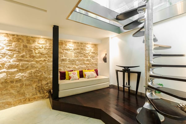 Discover the charm of Paris right at the heart, situated on the border of the Marais and conveniently close to the Louvre and the Pinaud Modern Art Museum. Enjoy easy access to taxis, parking, and public transportation, with three metro stations just a two-minute walk away. Indulge in the tranquillity of your own Parisian oasis with this elegant 310m2 Gustav Eiffel apartment. This loft-style space spans three levels, featuring steel beams, floating passageways, artist murals, and a stunning full-height cathedral window, creating a modern yet warm ambiance. The apartment offers three air-conditioned double bedrooms and a fourth modular sleeping area with a double bed (available on request), accommodating up to eight guests. Experience serenity with pops of foliage, including a six-meter Japanese Ficus tree with cascading aerial roots. A linear terrace shaded by palm trees provides a perfect spot to relax and enjoy your morning café au lait. Take a leisurely stroll along the Seine, explore the Louvre, or retreat to one of the neighbourhood's charming sidewalk cafes or restaurants for delightful wine and charcuterie. Complete with its own gym and relaxation room, the apartment invites you to enjoy a workout, a yoga class, or simply unwind in the multi-jet massage shower or sauna after a day exploring the city. Loved by individuals, couples and families of all ages - Pompidou and Montorgueil offer a unique and authentic Parisian experience that you will find welcoming and always treasure!