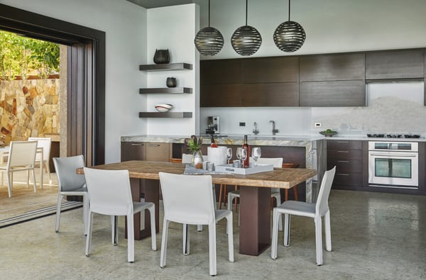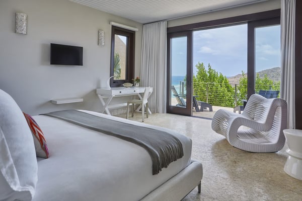 Perched on the North Ridge of the community sits Water’s Edge Villa, a luxurious BVI villa. Enjoy endless ocean views from the villa’s graceful indoor and outdoor living spaces, both characterized by clean lines, natural stone and floor-to-ceiling glass doors and windows. The primary suite is complete with large walk-in closets and a luxurious ensuite bathroom with an outdoor shower and decadent soaking tub. Every comfort is considered in three additional guest rooms each with their own ensuite bathrooms, private outdoor patios, and separate entrances. This beautiful villa boasts a vast infinity pool overlooking Oil Nut Bay’s pristine beach and protected bay, as well as ample space for outdoor lounging, dining, cooking, and entertaining.