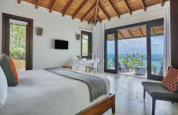 • Covered entryway opens to sweeping views of the Caribbean Sea and Oil Nut Bay