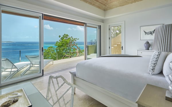 Nestled in a lush oasis with a gentle slope, this exquisite three bedroom Caribbean rental villa offers breathtaking views of the prestigious Eustatia Sound and neighboring Necker Island. The epitome of luxury, this exclusive island retreat is perfect for those seeking an escape from the ordinary. Designed in a pod-style layout, Reef House Estate provides ultimate privacy with three separate king suites, each boasting opulent ensuite bathrooms and balconies. Indulge in the tranquility of this idyllic haven, where every detail has been meticulously crafted for your utmost comfort and enjoyment. The focal point of this exceptional property is the expansive great room, boasting floor-to-ceiling glass windows and doors. Step outside to discover a captivating infinity lap pool, offering breathtaking views of the sapphire seas and endless skies. With ample space for outdoor dining, lounging, and entertaining, the possibilities are endless. Indulge your culinary desires in the gourmet kitchen, while the separate media room with a bathroom and sleeper couch provides the perfect space for relaxation. By day, witness the bustling activity of boats in the marina below, and by night, marvel at the blanket of sparkling stars above. This outstanding property is a haven for multi-generational vacations with a seamless blend of elegance and comfort.