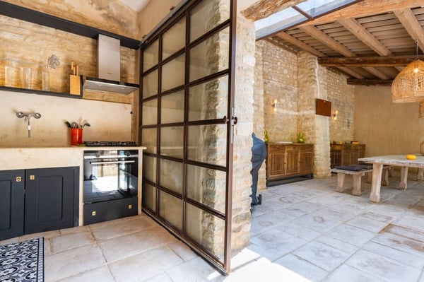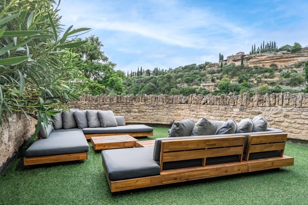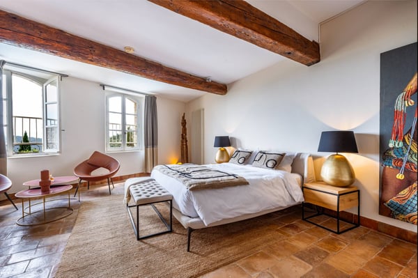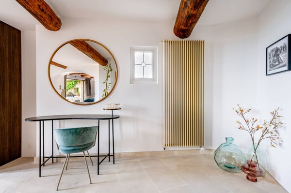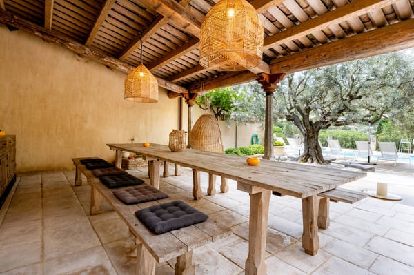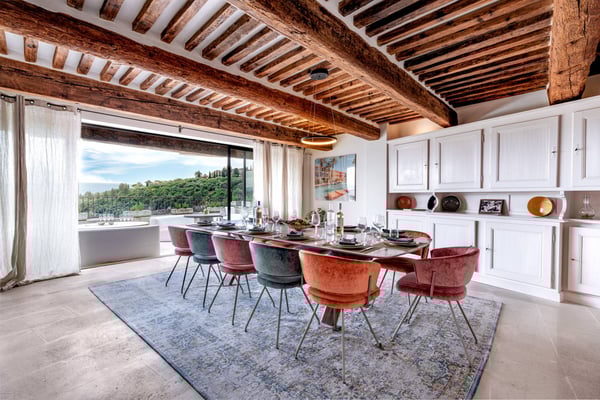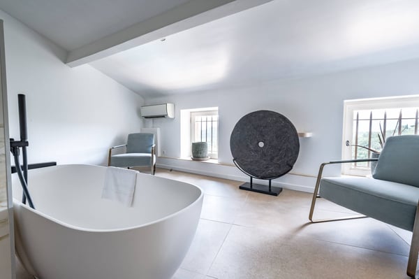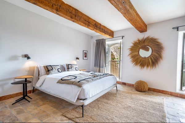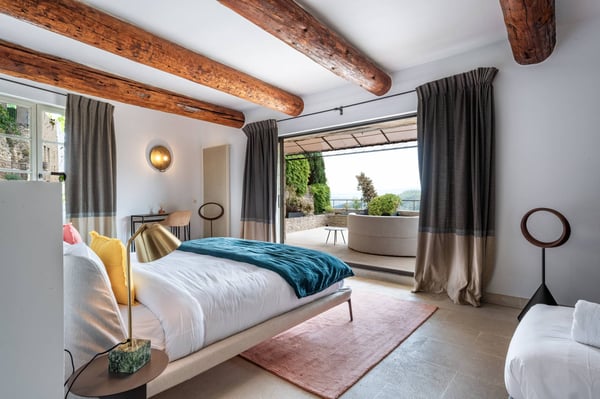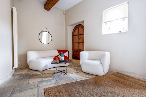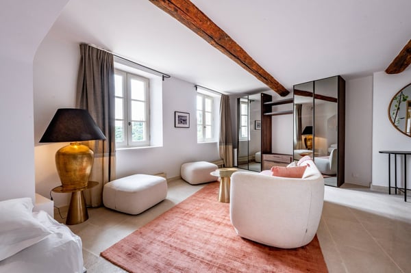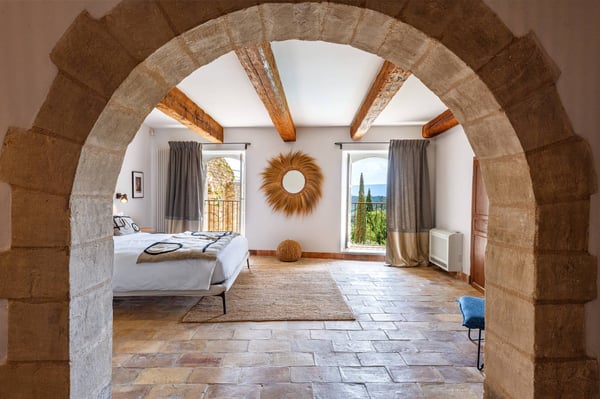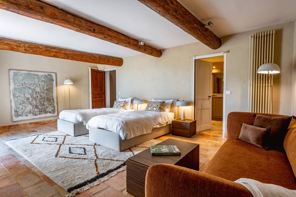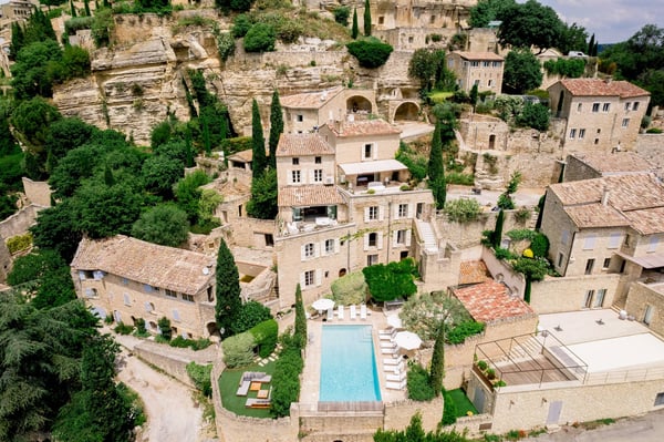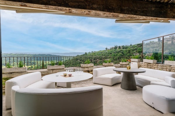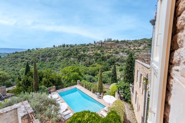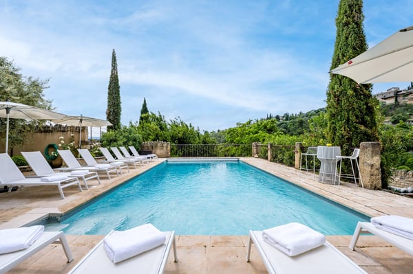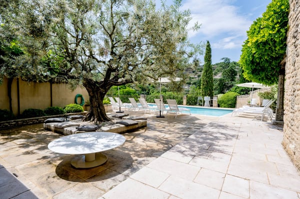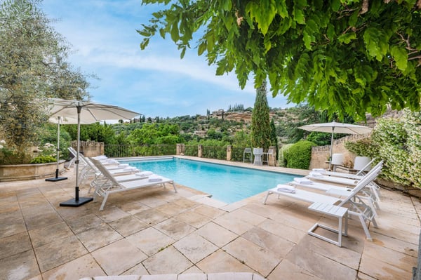 Hanging off the cliff, one of the most amazing houses in the famous village of Gordes! Vigne Vierge features six bedrooms, all equipped with private bathrooms, including two recently renovated suites, and is accessed by a majestic stone staircase. It has several terraces that offer a magnificent view of the Luberon Regional Natural Park and a spacious and luminous living room. The heated swimming pool with its old olive tree offers a breathtaking panoramic view. You will be seduced by the property's authenticity, its unique charm and its conviviality. All this, only a minute's walk to the centre of the mythical village of Gordes!