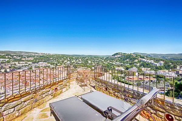 The 'Chateau' is located at the top of hill in the lovely village of Cassis. Cassis is a small old fishing port located in the 'Calanques' of Marseilles. The 'Calanques' are rocky stretches of coast with deep inlets to the east of Marseilles (at 45 minutes from Marseilles International Airport). The village is sandwiched between the 'Cap Canaille', the highest cliffs overlooking the sea in Europe (at 416 m altitude), and the 'Calanques'. To reach the 'Chateau', guests can either take the plane to Marseilles International Airport (45 minutes), Castellet Airport (for helicopters and private jets, 25 minutes); either take the TGV (high speed train) to Marseilles.