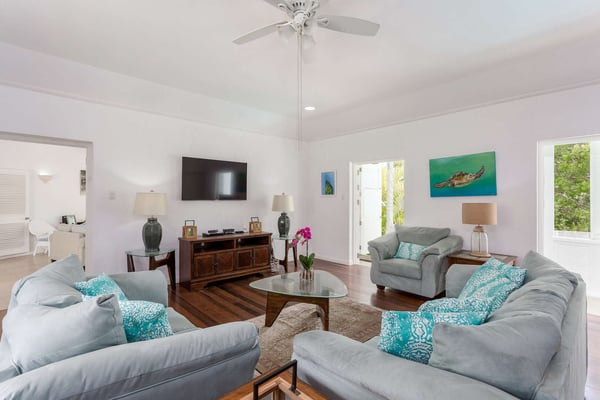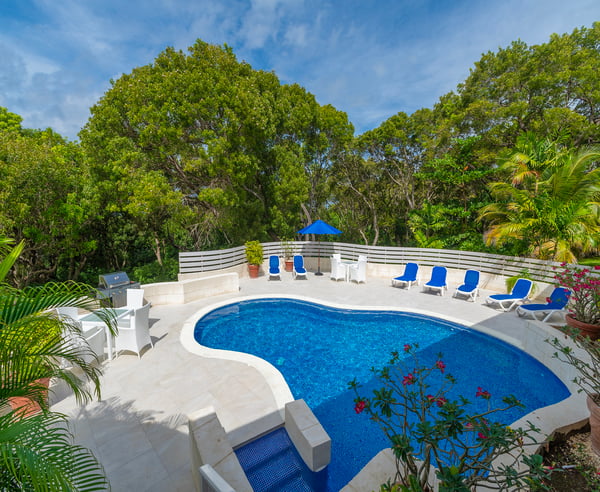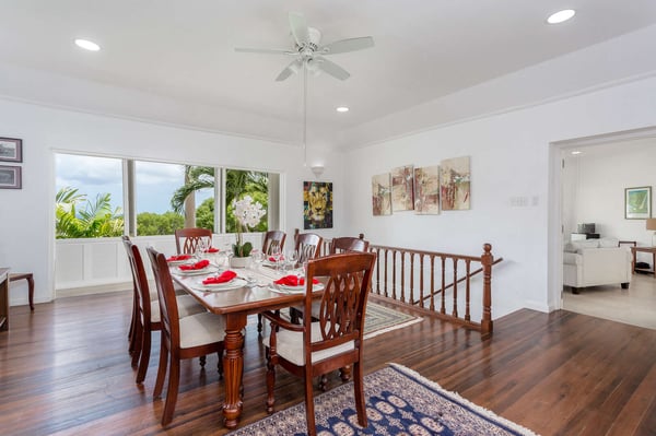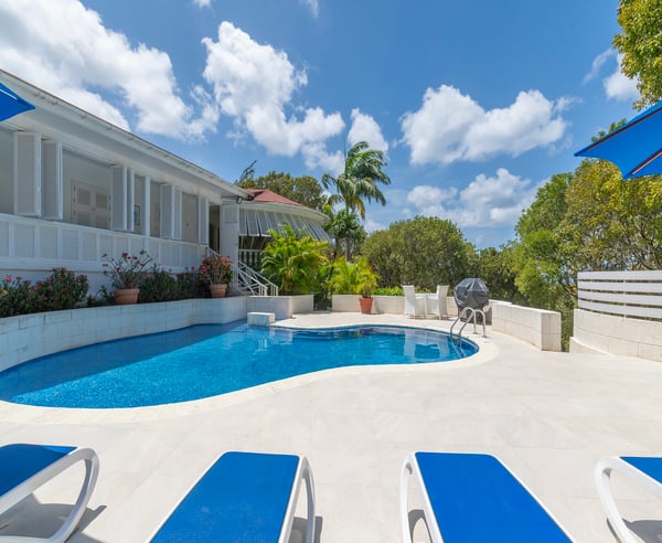 Halle Rose is located within the prestigious Sandy Lane Estate. Guests have access to Clubhouse facilities, beach chairs, cushions, umbrellas and tennis courts. Located on West Ridge Road, arguably the best road on the Sandy Lane Estate, is Halle Rose, a spacious six-bedroom colonial style property with sea views which is ideal for families and large groups, offering a range of modern conveniences and multiple lounging and entertaining areas. The main house and guest cottage encompass well over 6,000 square feet of covered living space and the villa is situated on one of the largest plots on the estate at over 2 ½ acres. The ridge front location offers sea views to the west amongst the majestic mahogany trees and to the south and east of the property is the famous Old Nine golf course with clubhouse, bar and tennis. This holiday home is a blend of colonial charm and modern finishes and features. The entrance level welcomes you with an inviting reception room which is classically furnished which then flows onto a terrace dining area that overlooks the pool and expansive lawn and gardens. An open corridor with views to the west takes you both north and south from the dining terrace and onto the bedroom wings. The north hallway overlooks and takes you down to the coral stone deck and pool with sun loungers and umbrellas and also leads you to two large guest bedrooms. The south hallway takes you to another guest bedroom and the large master bedroom and all bedrooms are air-conditioned and include en-suite bathrooms. To the right of the reception area is a TV and family room and to the left is a formal dining room with stairs that take you down to the kitchen and lower level. The modern and fully equipped kitchen is located on the lower level and includes a fun dumbwaiter food delivery system that services the dining room above. On the lower level there is also gym and a two bedroom, one bathroom guest cottage with living and office areas with its own entrance. The majestic gardens, privacy, space and sea views offered at Halle Rose set it apart from many rental homes on the Sandy Lane Estate. Take an early morning stroll around the neighboring Old Nine golf course, catch a game of tennis or relax at the private members Sandy Lane Estate Beach Club which includes parking, restaurant, bar, bathrooms, internet / office services along with beach chairs and umbrellas.