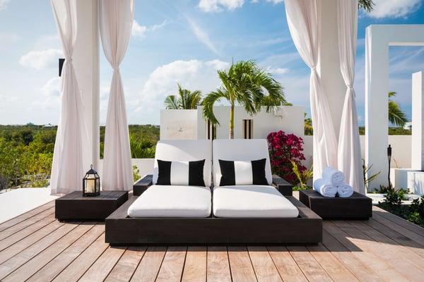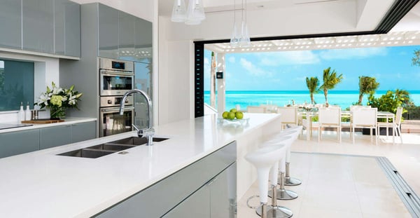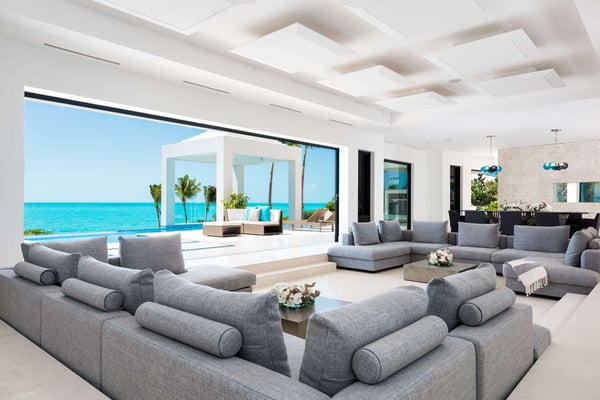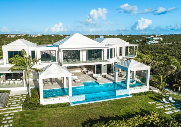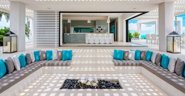 Nearby construction may result in noise disturbances. For further details on how this might affect your stay, please reach out to a Rental Escapes villa specialist. Construction is expected to last until January 2027. Tucked behind the pristine sand dunes of Long Bay Beach, Triton Luxury Villa sets a new benchmark for luxury in Turks & Caicos. Spanning over 7 acres of lush landscape, the estate offers 18,000 square feet of opulent beachfront living space. The villa features a total of 15 bedrooms, including an 8-bedroom main house, 4 standalone bungalows, and 3-bedroom staff quarters. Additionally, the villa now boasts a state-of-the-art sports center, complete with the only red clay tennis court and the only two padel courts in Turks and Caicos, as well as a pickleball court, offering guests top-tier facilities for fitness and recreation. The property features an outdoor movie theatre with fire pit, hot tub, 2 pools, cold plunge, sports center featuring private hard and clay tennis courts, pickleball and bocce ball courts, villa butler, chef, housekeeping and one of the nicest beachfronts on Long Bay. With endless unobstructed views of the world-famous turquoise waters of the Turks and Caicos Islands. Triton Luxury Villa sits on one of the world’s top beaches for kiteboarding. Known for its safe learning environment and ideal conditions, Long Bay Beach is an ideal location to learn kiteboarding. The majority of the kiteboarding takes place about 1 mile down the beach from Triton Villa. Named for the Greek god who was the messenger of the sea, Triton Villa is a private haven fit for an Olympian. Not only does this contemporary Turks and Caicos vacation rental boast a breathtaking setting on the white sands and turquoise waters of Long Bay Beach, but its bright, open living spaces enchant with their relaxed modern style.