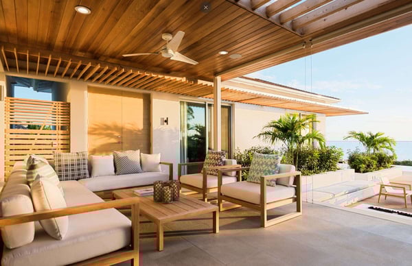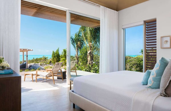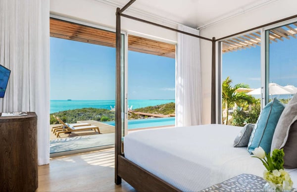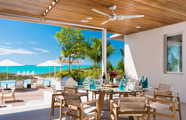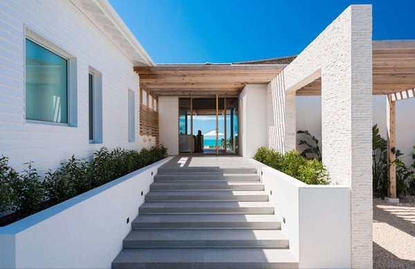 Hesperides House is a brand new five-bedroom luxury waterfront accommodation in the Turks & Caicos Islands. Named for the mythical garden at the edge of the western world of ancient Greek lore, and the three nymphs of the golden light of sunset who tend to it, Hesperides House is a stunning contemporary residence that lives up to its namesake. Located on the sunny southwestern shore of Provo in exclusive Silly Creek Estates, the home is situated in a private gated community on the edge of Chalk Sound National Park, where it faces sweeping Caribbean sea views across the Caicos Bank to West Harbour Point and the unspoiled shoreline of Frenchman's Creek Nature Preserve. Hesperides House offers everything you need for a perfect and indulgent getaway. Swim in the infinity edge pool while gazing across the mesmerizing cobalt of the Caicos Bank, relax in the waterfront gazebo caressed by the ocean breezes, or cozy up around the sunken fire pit to enjoy the perfectly framed sunset before dining alfresco on the outdoor terrace. A few steps from the patio and pool deck take you down into the gin-clear, sandy-bottomed water of the bank, where swimming, snorkelling, and kayaking await. Behind the home, there is a wading beach on Silly Creek, where the protected and shallow waters are perfect for young children. The home's location on the edge of the national park provides miles of shoreline and deserted beaches to explore by kayak or paddleboard. If that is not enough to keep you content, beautiful Taylor Bay and Sapodilla Bay beaches are just down the road, and great dining is a few minutes away at Las Brisas and Bugaloo's. The home was designed by acclaimed Coast Architects and carefully laid out to take maximum advantage of its incredible setting, with 4,000 feet of interior space and another 4,000 feet of decks and terraces, for over 8,000 feet of combined living space. It blends modern simplicity of structure and open floor plan living with incredible attention to materials and details. Built in three distinct pods for both privacy and community, it includes a large living and dining room with vaulted ceiling, a contemporary kitchen with gourmet appliances, five bedrooms, all en suite and a primary with an outdoor tub and shower, multiple decks and terraces, and a library with 65" TV, SONOS speakers and home theatre system. Beautiful gardens and lush tropical plants surround the house, giving it a tranquil tropical feel and providing privacy and seclusion.