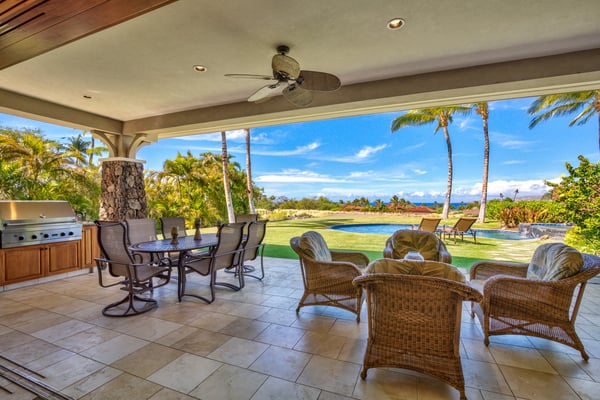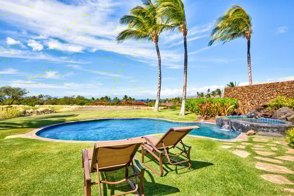 This spacious four-bedroom, 3.5-bath luxury townhome offering 3,132 square feet of indoor–outdoor living in the heart of the Mauna Kea Resort. Perfect for families and groups, this two-story residence combines the comforts of home with the amenities of a five-star resort, all within walking distance of two of Hawaii’s most beautiful white-sand beaches. The open-concept great room features high ceilings and retractable pocket doors that blur the line between indoor comfort and outdoor living. Step onto the covered lanai to find your own private pool, hot tub, waterfall feature, BBQ grill, tiki torches, and lush tropical garden—a secluded oasis ideal for relaxing days or evening gatherings under the stars. For added convenience, four hybrid bikes with helmets are included with your rental, making it easy to explore the resort and coastline. Inside, the home is fully equipped with a gourmet kitchen featuring Viking appliances, a wine cooler, granite countertops, and all the essentials for entertaining. Multiple living spaces offer room for everyone, with central air conditioning, ceiling fans, a large HDTV, and high-speed WiFi with a dedicated workspace. Hale ‘Ohana Kai features two primary suites—one upstairs with a private lanai overlooking the ocean and stunning sunset views, and one downstairs that opens directly onto the pool area. Two additional guest bedrooms, each with en suite baths, ensure comfort for families or friends traveling together. With a mix of king and queen beds plus a pull-out sofa, the home provides flexible sleeping arrangements. As a guest, you’ll also enjoy access to the Kaunaʻoa Club, featuring a Weiskopf-designed 3-hole practice golf course, infinity-edge pool, oversized hot tub, and fitness center. Please note: the clubhouse and fitness center are currently open from 10 am–2 pm daily, while the practice course is available all day. For those seeking more, the Mauna Kea Beach Hotel and Westin Hapuna Beach Resort are just a short walk away. Guests may purchase resort privileges, which include use of hotel pools, spas, fitness centers, tennis courts, golf at preferred rates, and convenient charging privileges at restaurants, lounges, and shops. With its private backyard sanctuary, thoughtful amenities, and close proximity to resort beaches and activities, Hale ‘Ohana Kai is a warm and welcoming choice for your Big Island escape. Hawaii TAT#: TA-086-147-4816-01 STVR-19-368944
