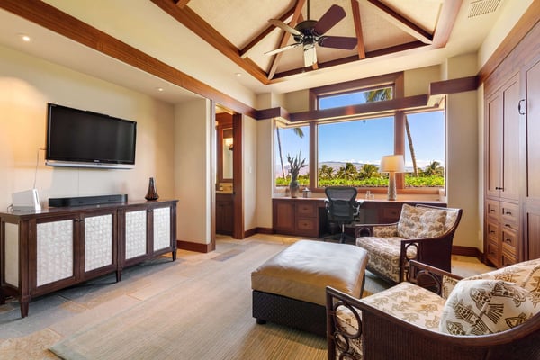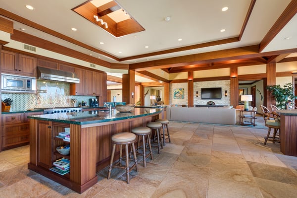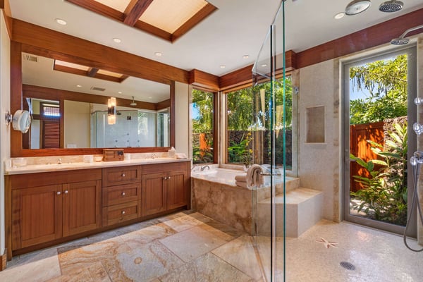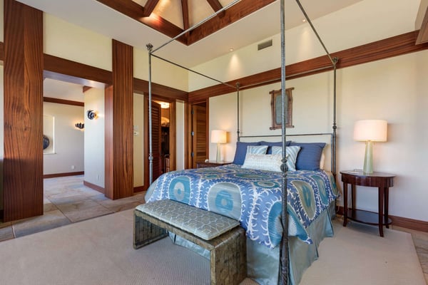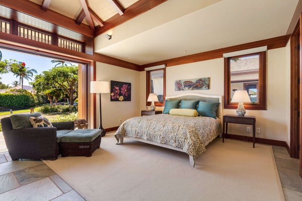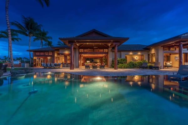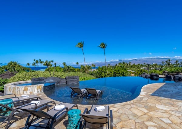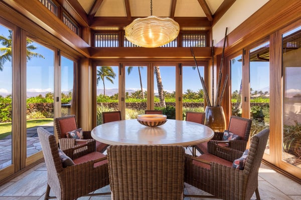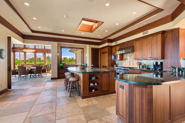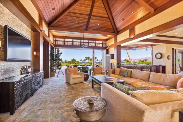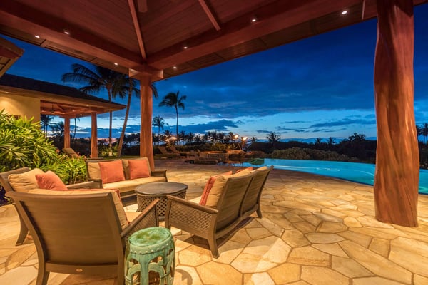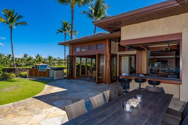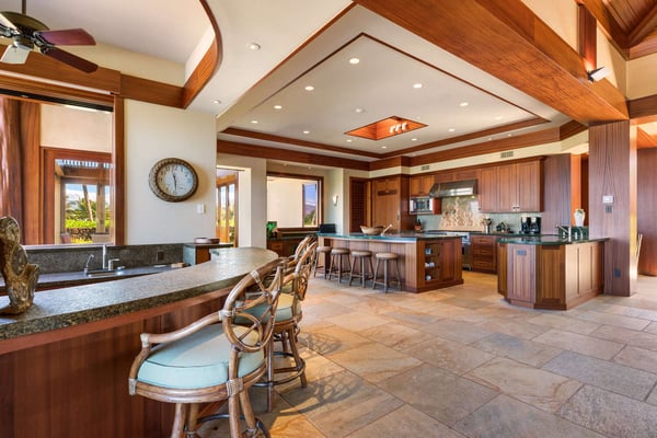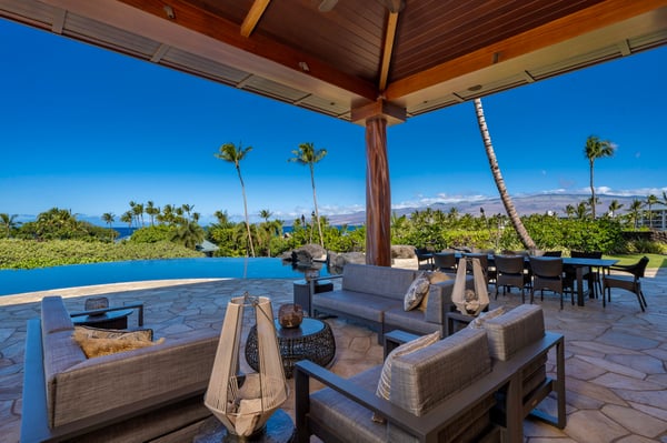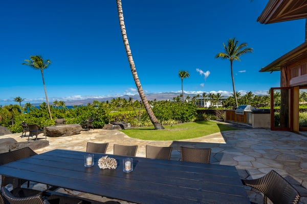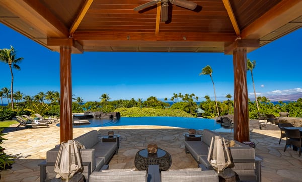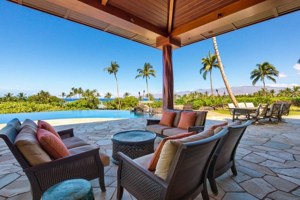 All Mauna Lani rentals enjoy access to the following: Golf at the renowned Francis H. I'i Brown Golf Course. Play tennis at the Mauna Lani Racquet Club. Luxuriate at the Mauna Lani Spa. Take a short walk to the private Mauna Lani Beach Club with its white sand beach and excellent snorkeling. Restaurants and shopping are nearby. Nestled between two premier hotels, on the grounds of the famed Mauna Lani Resort, Hale Le‘ale‘a boasts an unbeatable, almost oceanfront location just steps from the beach with incredible and panoramic, 180-degree views of the ocean and coastline. From its elevated and spacious outdoor living area, enjoy looking down on Pauoa's lush tropical landscape, greeting the crystal blue Hawaiian waters beyond. With white water surf and sand views ahead, you also have sight lines of the Island of Maui, the Kohala Mountains, and the magnificent Mauna Kea, making this without question one of the most dramatic custom homes in this fabulous, one-of-a-kind gated multi-million dollar neighborhood. Five bedrooms, Five and a half baths, and over 5500 square feet of living area make this home perfect for a family or two to enjoy. Decorated with only the finest appointments and decor, Hale Le‘ale‘a has fabulous quartzite floors, custom Sepele cabinets, granite countertops, vaulted ceilings, transom windows, rich Ohia wood posts, and mahogany finishes. The deep lanai, which holds a fabulous infinity pool, hot tub, and built-in gas grill opens seamlessly through pocket doors into the interior living space for perfect indoor/outdoor living. Located in one of the most exclusive, oceanfront enclaves in the State of Hawaii at Pauoa Beach, this home is surrounded by pure serenity and first-class amenities, and you will have two four-seat golf carts for getting around. The private Pauoa Beach Club offers an oversized 100-foot-long negative edge pool, spa, children's pool, fitness center, saunas, kitchen, entertainment pavilion, and beachfront access where you can enjoy the fine white sand of the Fairmont Orchid Beach along with sunbathing turtles, endless ocean activities and the oceanfront bar and restaurants at the Fairmont Orchid Hotel. Walk or drive your private golf car, complimentary with your rental, just a few minutes further to the Mauna Lani Bay Hotel, more white sand beaches, shops, gourmet grocery, restaurants, beach bars, tennis, Mauna Lani Spa, wonderful whale watching in winter months and more. Enjoy 36 holes of championship golf, miles of bike and walking areas, and the incomparable Kohala Coast resorts, all within minutes of this stunning destination. Hawaii TAT#: 029-002-9568-01 STVR-19-350996