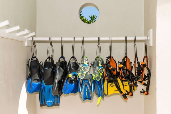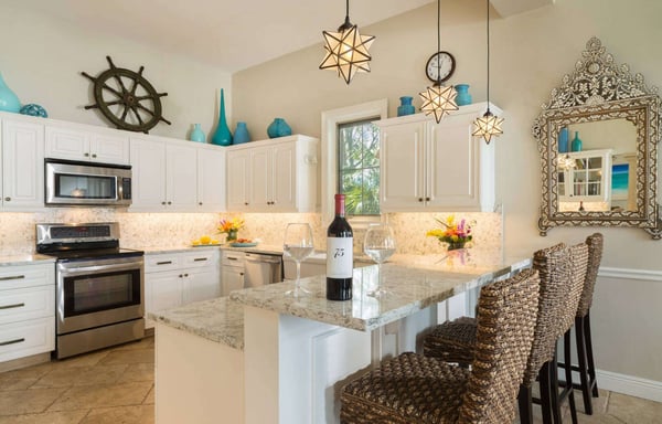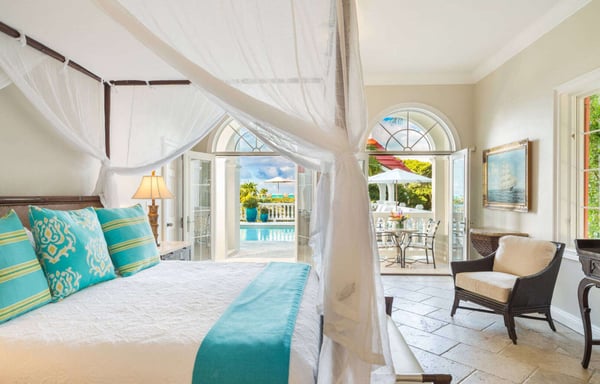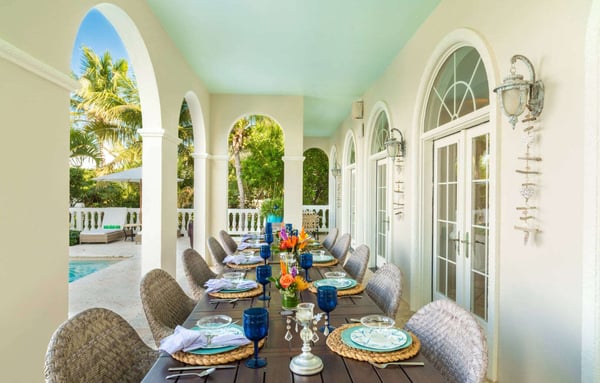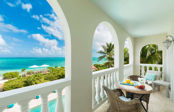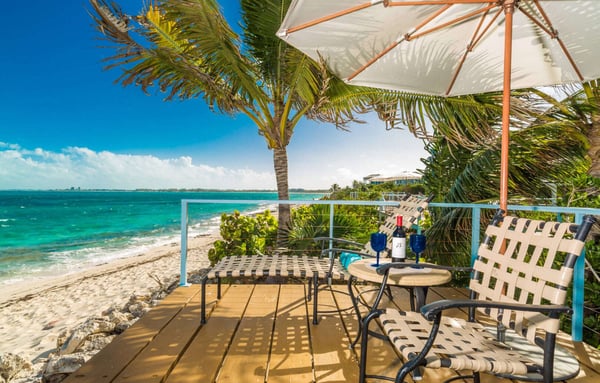 Rejuvenate in Caribbean classical grandeur at an elegant three-story beachfront estate on Grace Bay Beach. Grace Bay is voted the world's top beach year after year. Everyone is happy with the room selection at Beach Villa Paprika because the five spacious bedroom suites are equal in size. Each master suite has a beautiful water view, a private furnished patio or balcony and an en-suite bathroom. Villa Paprika sleeps ten people comfortably with seven king beds. There are five full baths and two half baths. The covered, poolside dining table comfortably seats 12 to 14 people and is perfect for large groups and special celebrations. The indoor table seats ten. Enjoy the outdoor grill and fully-equipped gourmet kitchen, or hire a villa chef or catering service to prepare memorable dining experiences. Villa Paprika balances grand social spaces with secluded quiet places to help guests both connect and retreat on vacation. The location serves a wide variety of personal interests. Enjoy the beautiful turquoise waters and sugary beach sand with three oceanfront decks with shade umbrellas, sunbathing chaises, tables and chairs. Look for dolphins and sea rays while relaxing on the deck in the early morning! Wooden boardwalks separate the decks supporting secluded areas for meditation, private conversations, and reading. Smith's Reef is literally steps offshore, directly in front of the villa. It is voted the island's best snorkelling reef close to shore. Explore an ocean playground with hundreds of fish species, or relax in the villa's large saltwater pool. The coral stone pool terrace is surrounded by beautiful flowers, coconut palms, sunbathing chaises, and a shade gazebo. There's a shallow kiddie pool for young children and a Pottery Barn Kids play kitchen on the 3rd floor. Beach walkers love Grace Bay Beach for its tranquil miles of perfect sand and pristine turquoise waters. Villa Paprika's beach has ample soft, sugary sand. Water shoes are recommended for the narrow strip of rocks close to shore, which may be slippery when wet.