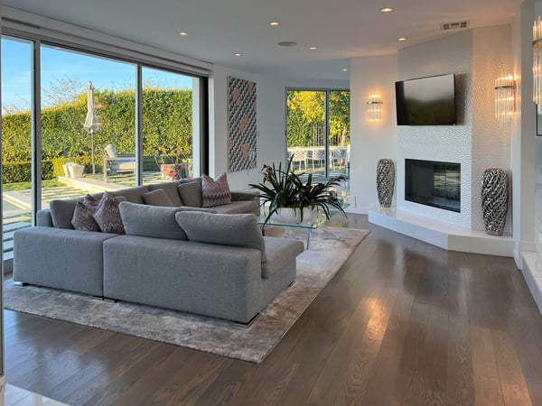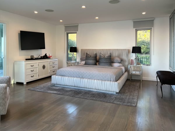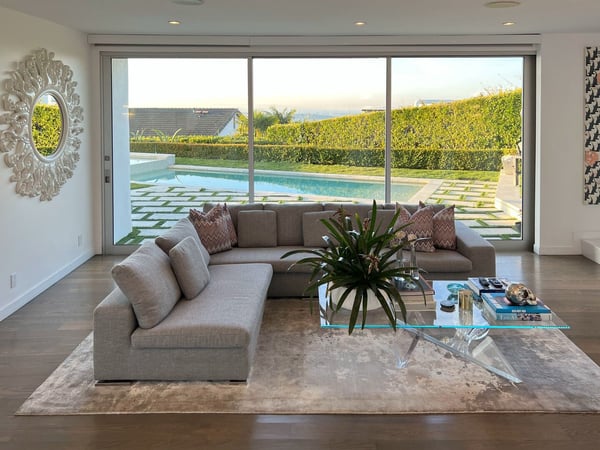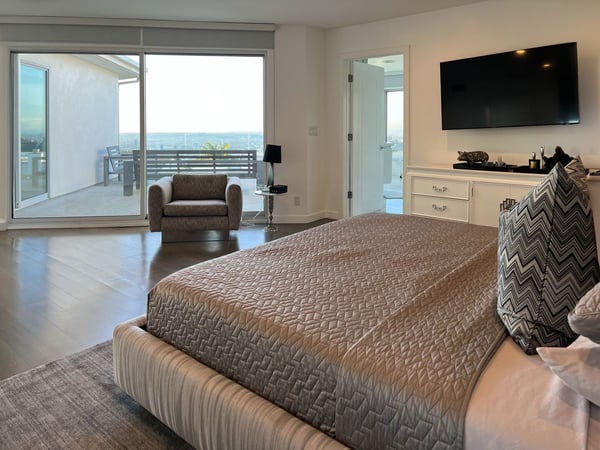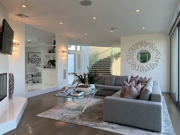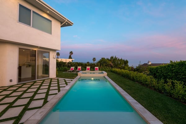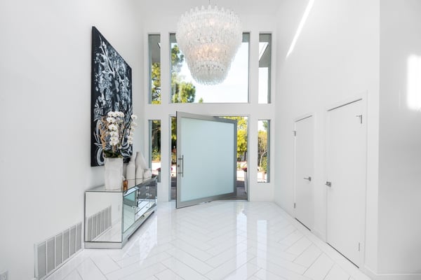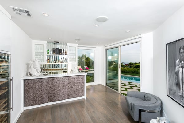 The beautifully-constructed Venus Modern is an elegant vacation rental. This modern luxury home in Hollywood Hills has state of the art amenities and sits high in the canyon that looks out over Los Angeles. Only five minutes from the Sunset Strip, this magnificent mansion can entertain eight family members and friends. When guests enter the Venus Modern, many are greatly taken in by the immense glass door which opens itself to the hallway's exquisite Venini chandelier and cascading glass staircase. The flawless living space draws guests' eyes where the floors are adorned with custom gleaming Porcelanosa tile and French white oak. In the living room a Sputnik light fixture and zebra rug adds to the décor. The fully equipped kitchen boasts Miele appliances which add to the refined ambience. All of the four bedrooms at Venus Modern villa have their own bathrooms. Three bedrooms have queen beds, one with its own balcony. The honeymoon-esque master bedroom contains a king bed, spa-style steam shower, walk-in closet, and terrace access. The elevation of the Hollywood Hills notwithstanding, this property is in close proximity to Hollywood’s greatest draws, from Universal Studios Hollywood to the Hollywood sign and Walk of Fame. A short drive will find you on the Sunset Strip of West Hollywood, perhaps America’s most famous nightlife hotspot. A few minutes beyond, the glitz and glamor of Beverly Hills awaits.
