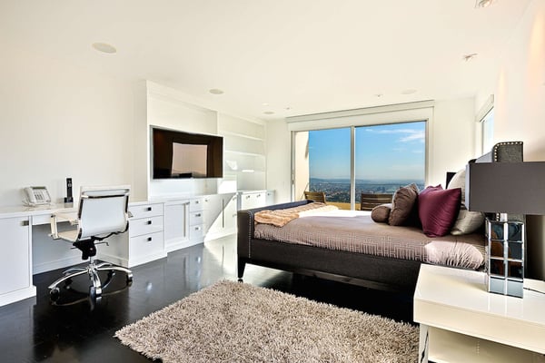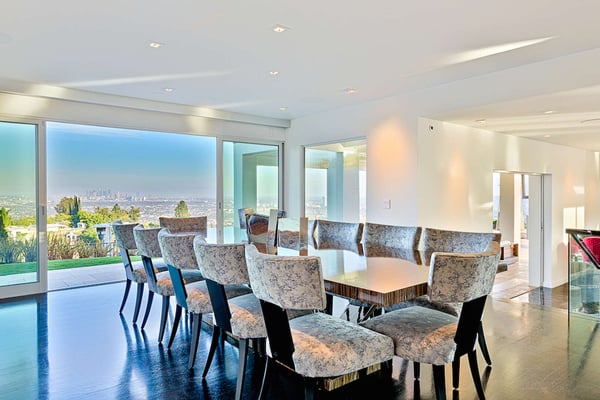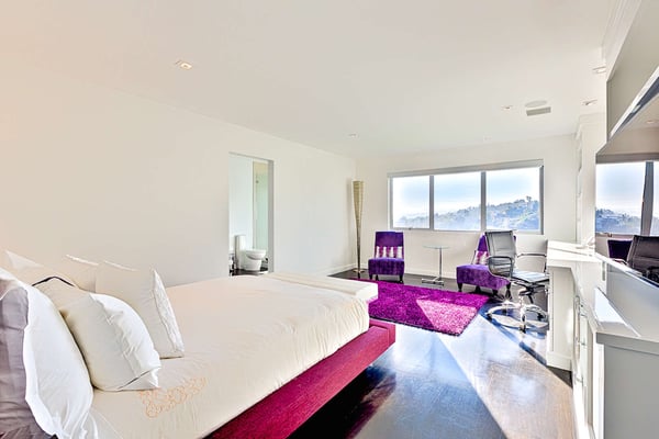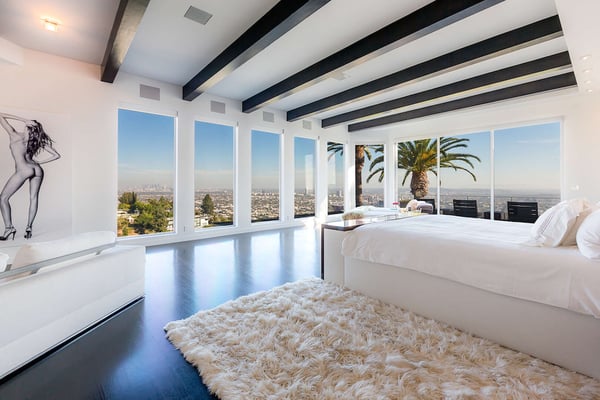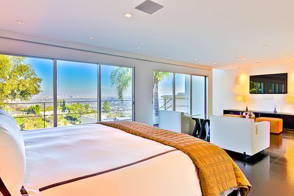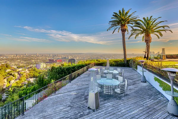 The famed Bird Streets of Los Angeles, home to its taste making stars, host the Mockingbird Estate, a luxury Hollywood Hills vacation home with spectacular views of the city. With 67,000-square feet on the lot, this spacious estate is an excellent way to experience the very best of Los Angeles on your vacation. The Mockingbird Estate is ideally situated to enjoy the best of West Hollywood's famous Sunset Strip. At the center of Los Angeles's attractions, it nevertheless carves out a suitable amount of personal space for those seeking a peaceful Los Angeles vacation rental. On approach, four hundred feet of winding driveway open up to a motor court, and the grounds provide large sun decks and patio areas perfect for entertaining. The pool and cabana, as well as the aforementioned stunning views, mean simply spending time relaxing poolside can be a delight. This six-bedroom home does not skimp on room size. The master suite alone is 2,500-square feet, with views of the city, a sitting area, and a bathroom with walk-in shower and tub. The other five queen-sized bedrooms all enjoy their own en-suite bathrooms, while four have patio access and three also enjoy city views. The exquisitely-designed kitchen is perfect for hosting dinner parties, with a dining room that can seat twelve, and expansive lounge area that includes a stylish bar. As vacation rentals in Los Angeles go, it's hard to find somewhere better to base yourself than the Bird Streets. Beverly Hills' famous Rodeo Drive is barely 15 minutes drive away, and if you tire of the shopping to be had there, Santa Monica awaits only a few miles further. If you’d like to explore the city, Venice Beach, Griffith Park (and the Hollywood sign) and Universal Studios Hollywood are within an hour’s drive.