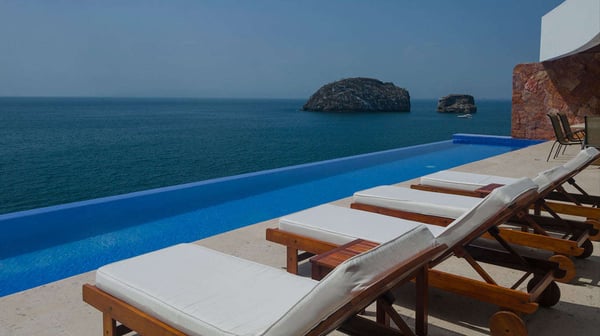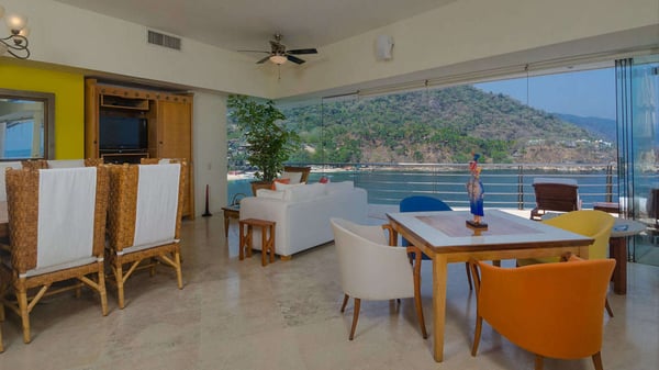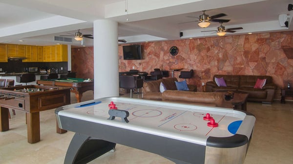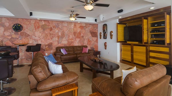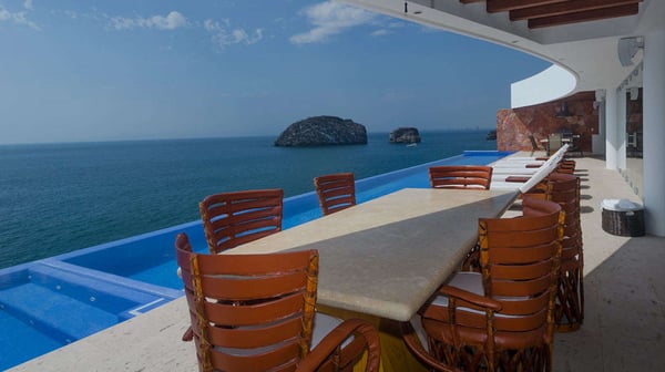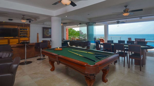 Casa La Vista's internet can be unreliable. Contact a Rental Escapes villa specialist for more information about how this may impact your stay. With our two year expansion project just completed in 2013, Casa la Vista now offers 25,000 square feet of luxury oceanfront vacationing and amazing sunsets year-round! Perched majestically on the outer edge of Mismaloya Cove, with a north south wing and an east west wing, Casa la Vista (translated 'house with the view') has a combination of amazing views quite unique and impressive! Tremendous amount of public lounging space indoors and out, perfect for large groups, special occasions and wedding events. Fantastic full floor game room, with full kitchen/bar, pool table, poker table, blackjack table, Foosball table, air hockey table and entertainment cabinet with home theater and BOSE music system for indoors and outdoors. The full floor primary suite includes a living area, dining area, full granite kitchen, walk-in closet, full bath with two person shower and two person Jacuzzi, as well as an incredibly large oceanfront deck. the third primary bedroom also offers a nice private garden patio, with platform beach lounge area.