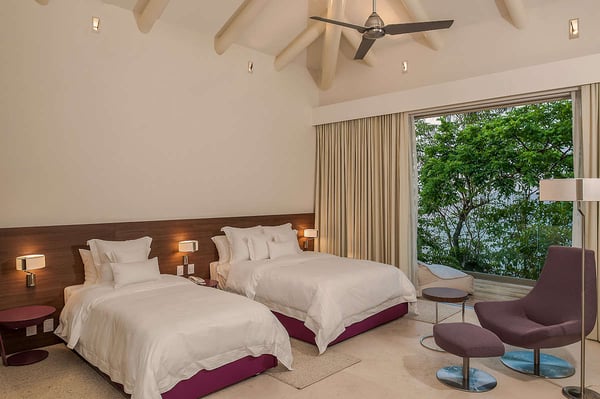 • The villa features a service quarters bedroom with two twin beds. The Twin beds can be rented out along with the rest of the villa. Inquire with a reservation manager for more information.