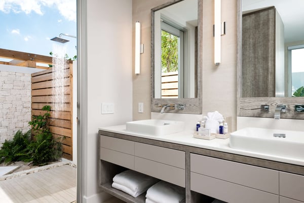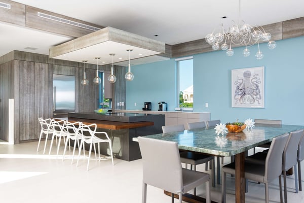 Striking a balance between environmental responsibility and contemporary design, the beachfront residences of The Dunes have set a new standard of excellence for luxury villa homes on the Turks & Caicos Islands. Offering a unique beachfront that is home to Smith’s Reef where you will see a variety of corals, fish, and at times turtles. Overlooking breathtaking vistas from three ocean view bedroom suites in the main villa (including two master suites), or the utmost privacy in 2 additional one-bedroom executive pool suites—each with an outdoor shower—situated adjacent to the spectacular pool oasis that forms the heart of each villa. The property’s 7 bedrooms and 6.5 baths complement expansive indoor/outdoor living space totalling more than 6,700 square feet, all situated within a gated, micro resort community. Meanwhile, The Dunes’ onsite, personal concierge will ensure no wish or whim goes unfulfilled. In the heart of the home, delight in the contemporary style oasis-like pool area featuring a “floating” outdoor dining palapa and bold fire feature. Oceanside, sliding doors disappear to seamlessly connect the main villa’s indoor living space to the full-width beachfront terrace. The sumptuously appointed terrace flows out onto unique “nestling areas,” located within your own private sandy dunes, overlooking the famed Smith’s Reef. Behind the scenes, multi-zone air conditioning systems, solar water heating, gray water recycling, and BIONEST wastewater treatment provide the utmost comfort while utilizing advanced technologies carefully selected to reduce the homes’ environmental footprint.
