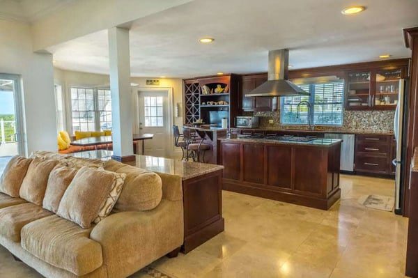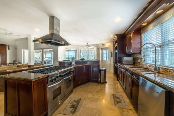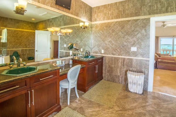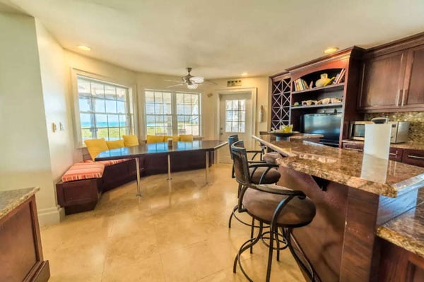 20 minutes away from Providenciales International Airport, this spacious home sits perched overlooking Chalk Sound Creek and ocean. With a stunning sunset view, an amazing infinity pool, which is one of the highlights of the home that appears to blend into the ocean. Relax in the hot tub spa or after retiring from swimming kick back, relax with a cool refreshing drink on one of the decks in a comfortable chaise or just fall asleep in the day bed. For fun head on down to the dock where you may fish with the possibility of catching your dinner for the night; go swimming in the ocean; or enjoy kayaking in the beautiful Chalk Sound Creek, or simply unwind with a game of pool in the game room. No need to miss out on your daily work out routine. Enjoy your regular workout downstairs in the gym while enjoying a view of the ocean. Inside, enjoy the tranquil ambiance, with open living space. Each room features a 30" to 60" television. The den/library has a desk and sitting area where you may have some peace and quietness to check in at the office at the same time send your co-workers pictures of your vacation. The kitchen is fully equipped with all the necessary appliances you will need to make you feel at home. This four-bedroom house comfortably sleeps eight to ten guests. All bedrooms have a view of the ocean, ceiling fans and air conditioning. The famous Taylor Bay Beach is five minutes drive away from the villa and the famous Las Brisas Restaurant is a three minute walk from Taylor Beach. There you may tour the Chalk Sound National Park on the Pontoon Cruise at Las Brisas. You cannot leave without having lunch at Bogaloos in Five Cays where you may literally have lunch on the water and watch the waves come in.