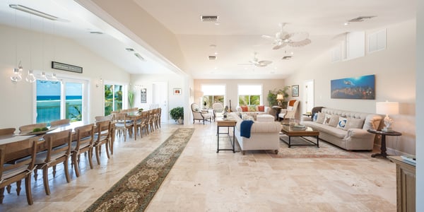 Located just a mile from the famous Rum Point Club, Fischer's Reef is a perfectly designed 7-bedroom oceanfront villa ideal for large families or group getaways. The villa's unique floor-plan allows guests to spread out in ample style with multiple living and sleeping areas. A wide staircase separates the floors, meaning the noise from one floor won’t reach the others. Renovations completed include luxurious features such as an oceanfront infinity pool with optional heat, beach cabana, multiple indoor and outdoor dining areas, two separate 75-inch LED TVs, and a Sonos home theater system. For remote working professionals, a new high-speed fiber internet connection has been wired to the property. Multiple users and devices can now connect to the web to work or learn remotely with reliable speeds and increased bandwidth. All the attention to detail makes Fischer’s Reef a wonderful venue for entertaining and relaxation. Beach Notes Fischer's Reef is less than a mile east of the famous Rum Point Club and enjoys a sandy beach with excellent reef-protected snorkeling. No fishing is allowed within this protected habitat, and guests are advised not to touch or disturb the coral reefs. To avoid accidentally damaging the corals, we discourage the use of flippers when snorkeling. Please use pool shoes instead. The entire island is only 22 miles wide from west to east, so you are never too far from anywhere on Grand Cayman. The beaches usually have plenty of white sand, but can also have spots of rocky “ironshore” with natural rock formations. General Grand Cayman Beach Notes All beaches in Grand Cayman are technically “public” since the Queen owns up to the high watermark and the shoreline quality behind your property may vary seasonally. Be advised that the beach or water entry behind your property may vary slightly from the images on our website because of the weather. The next-door beach is also always available for your use. Ocean Debris and Sargassum Seaweed Beaches in Grand Cayman may also experience floating ocean debris and sargassum weed seasonally. Sargassum is a generally harmless floating seaweed that has increased in frequency in recent years. Although sargassum is an unsightly nuisance, it is largely seasonal in summer. The owners do make efforts to remove heavy sargassum and will have the beach raked prior to your arrival. We try our best to work around mother nature.