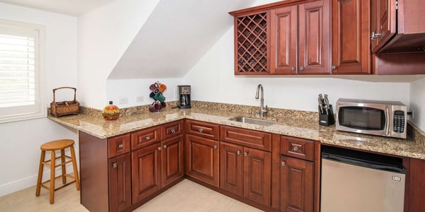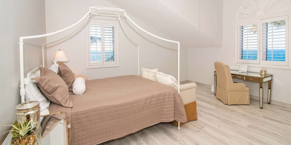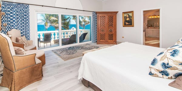 Welcome to On The Rocks. This oceanfront gated estate is conveniently located 20 minutes from the airport in the planned residential community of Beach Bay. The dozen or so homes along this rugged coastline share a key neighbourhood amenity: a wonderful sandy beach cove, with protected swimming and excellent snorkeling, just 5 minutes from the villa! Our guests report seeing lobster, octopus, and teeming juvenile fish along the coral heads. Architecturally, the design and flow of the house are low-country plantation-style with elevated ocean views throughout, a wrap-around veranda, and a central great room with walk-out access to a private freshwater pool. There is an enormous driveway for parking and a garage with an optional guest suite above. The main six-bedroom, three-bathroom villa features a wrap-around veranda that provides a full-day respite from the Caribbean sun with shaded areas for a good read, morning yoga sessions, breakfast, or sunset viewings. The freshwater pool has a wide sundeck with lounge chaises as well as a gazebo for al fresco dining by the sea. A zoysia grass lawn feels cool on bare feet and the estate has many mature palm trees for additional shade. Beach Notes On The Rocks estate is on an elevated rocky bluff overlooking the Caribbean Sea. In the evening it is not unusual to see cruise ships passing by on their way back to Jamaica or the USA. We have great panoramic views, however, you would not enter the beach from the rear of the house. This executive residential development of "Beach Bay" has about 12 homes like On The Rocks that all share a communal sandy beach cove with protected snorkeling just 400 yards east of the villa (3-minute walk). Parking is offered if you prefer to drive. The owner has six beach chairs for you to use and if you need more, please ask the manager. The beach offers a sandy entry into the water and multiple palm trees provide shade--no need to take an umbrella! As this is still a marine environment, we recommend either swim fins or stretchy water shoes to protect the feet from sharp shell shards, broken urchin spines, etc. The water is clear, and the bottom is sandy, but we still err on the side of caution. General Grand Cayman Beach Notes All beaches in Grand Cayman are technically “public” since the Queen owns up to the high watermark and the shoreline quality behind your property may vary seasonally. Be advised that the beach or water entry behind your property may vary slightly from the images on our website because of the weather. The next-door beach is also always available for your use. Ocean Debris and Sargassum Seaweed Beaches in Grand Cayman may also experience floating ocean debris and sargassum weed seasonally. Sargassum is a generally harmless floating seaweed that has increased in frequency in recent years. Although sargassum is an unsightly nuisance, it is largely seasonal in summer. The owners do make efforts to remove heavy sargassum and will have the beach raked prior to your arrival. We try our best to work around mother nature.